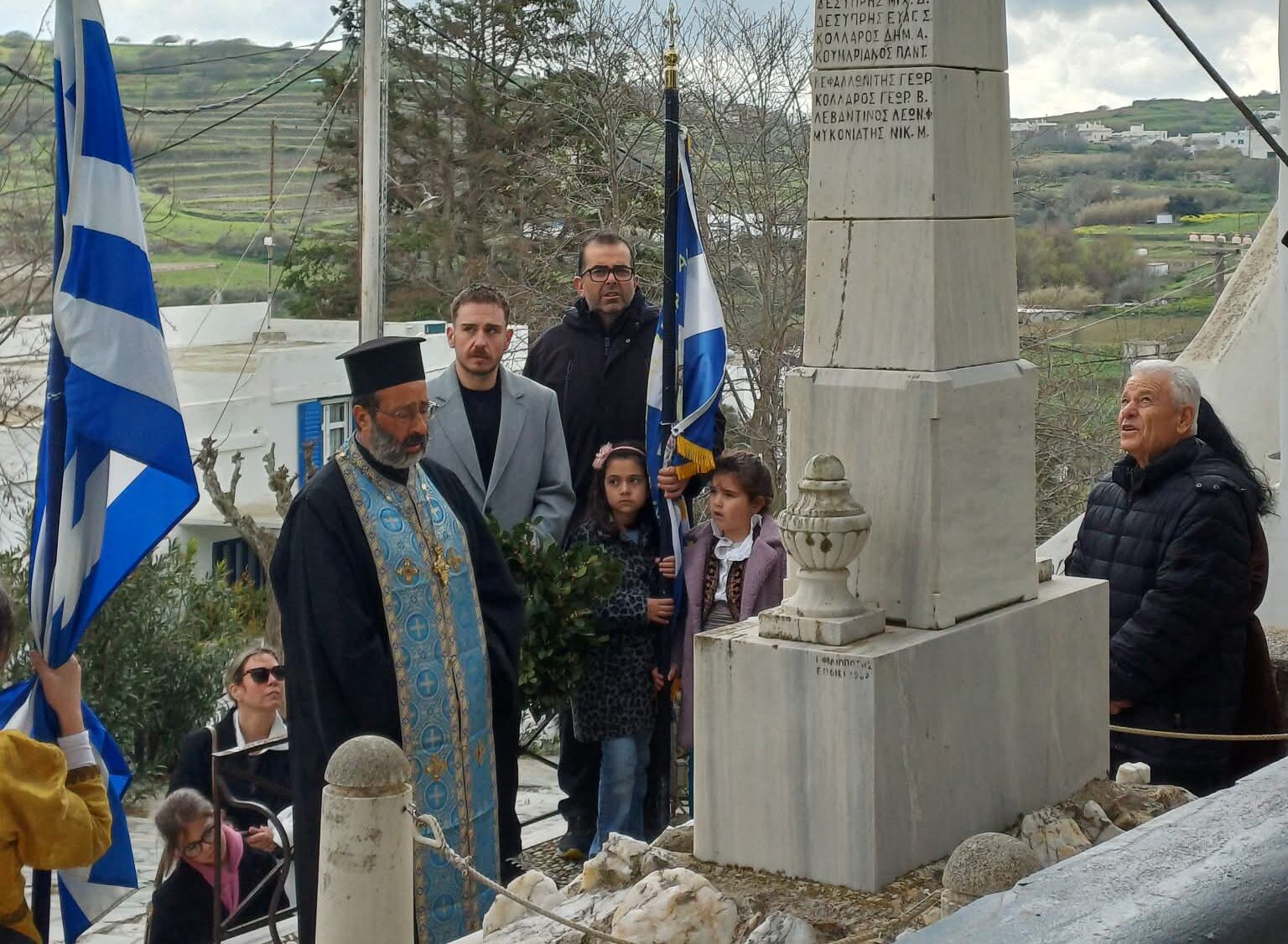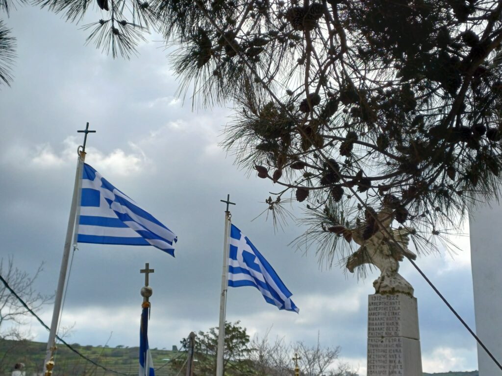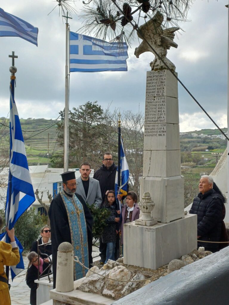 Ο πατέρας Άγγελος Τζανουλίνος τέλεσε τη δοξολογία στον Ιερό Ναό Αγίου Ιωάννου Θεολόγου και στη συνέχεια την επιμνημόσυνη δέηση στο μνημείο των Ηρώων του χωριού.