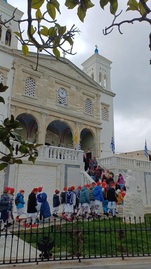 Τα παιδιά του Δημοτικού Σχολείου Εξωμβούργου συνοδεία της διευθύντριάς του, κυρίας Κύρου Κατερίνας και των εκπαιδευτικών τους, ζωντάνεψαν με τις φωνές τους το χωριό μας αυτή την τόσο ξεχωριστή μέρα για τη Χώρα μας!