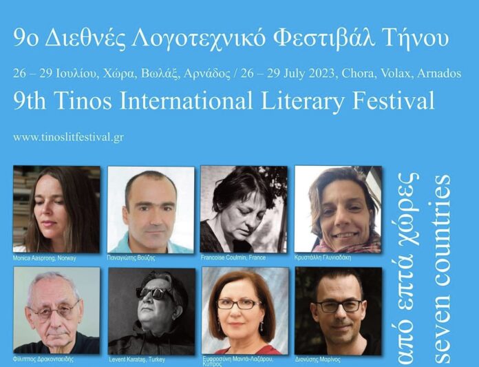 Αυτόν τον Ιούλιο ετοιμαστείτε για το 9ο Διεθνές Λογοτεχνικό Φεστιβάλ Τήνου. Από 26 έως 29 Ιουλίου, στη Μοσχούλα, στο Ίδρυμα Τηνιακού Πολιτισμού, στα χωριά Βωλάξ και Αρνάδος, 15 πεζογράφοι και ποιητές από επτά χώρες — Monica Aasprong (Νορβηγία), Παναγιώτης Βούζης, Françoise Coulmin (Γαλλία), Κρυστάλλη Γλυνιαδάκη, Φίλιππος Δρακονταειδής, Levent Karataş (Τουρκία), Ευφροσύνη Μαντά-Λαζάρου (Κύπρος), Διονύσης Μαρίνος, Ευαγγελία Μινάρδου-Αδάμου, Mariana Orantes (Μεξικό), Σωτήρης Σουλιώτης, Λίνα Στεφάνου, Δημήτρης Σωτάκης, Meng Yifei (Κίνα) και Αλέκος Φλωράκης —μας ξεναγούν με αναγνώσεις στο έργο τους. Θα διαβάσουν, θα γίνουν συζητήσεις, θα παρουσιαστεί το ειδικό τεύχος για την Τήνο του περιοδικού (δε)κατα, θα γίνει προβολή βίντεο ποίησης, θα ακούσουμε μουσική. Πρόκειται για ένα πραγματικό φεστιβάλ λέξεων, ήχων, στίχων.