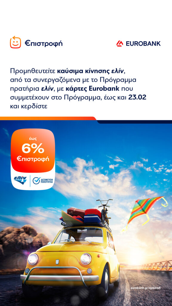 👉 Ισχύουν όροι και προϋποθέσεις eurobank.gr/epistrofi & https://elin.gr/ypiresies/prowthitikes-energeies/epistrofi-tin-kathara-deutera-me-kafsima-kinisis-elin/