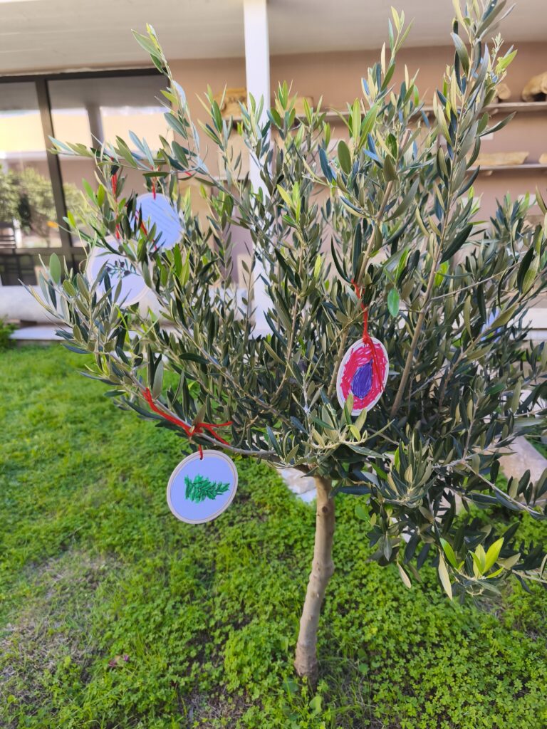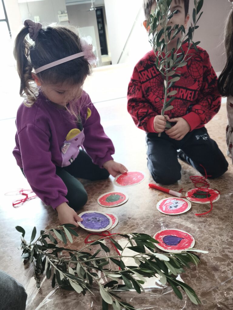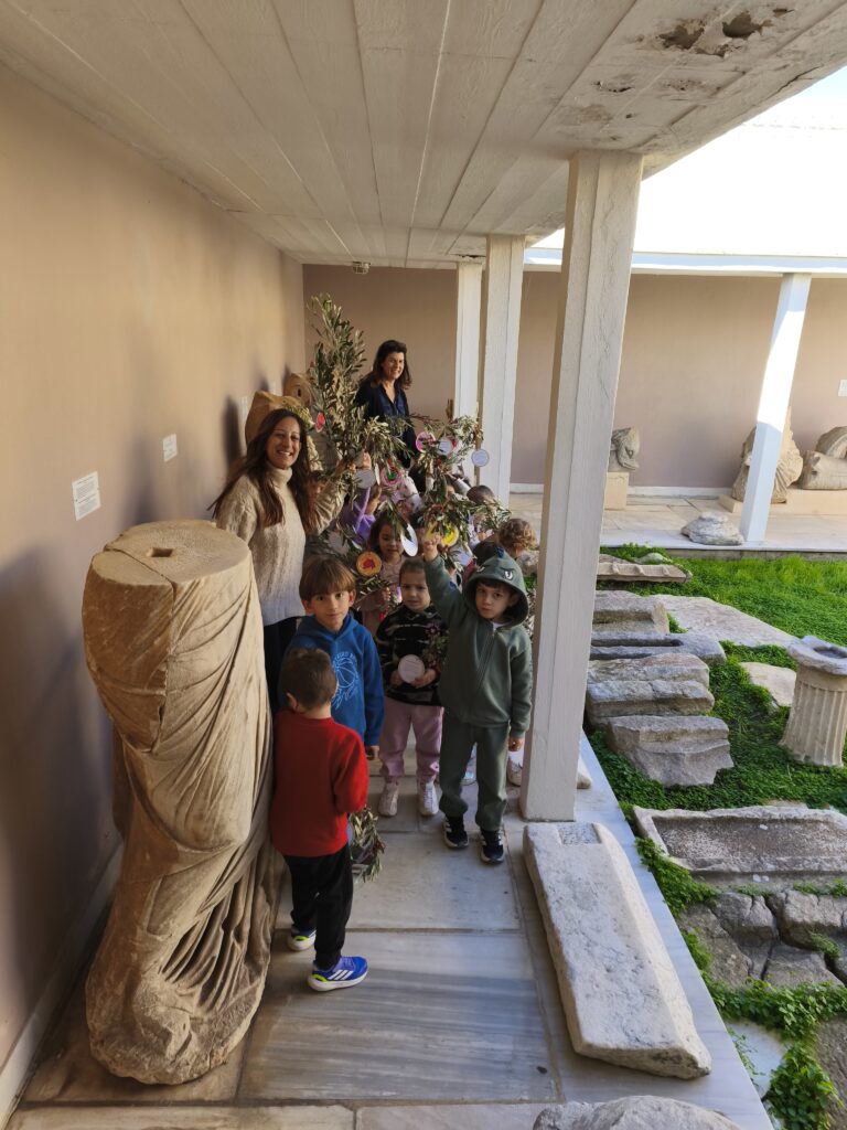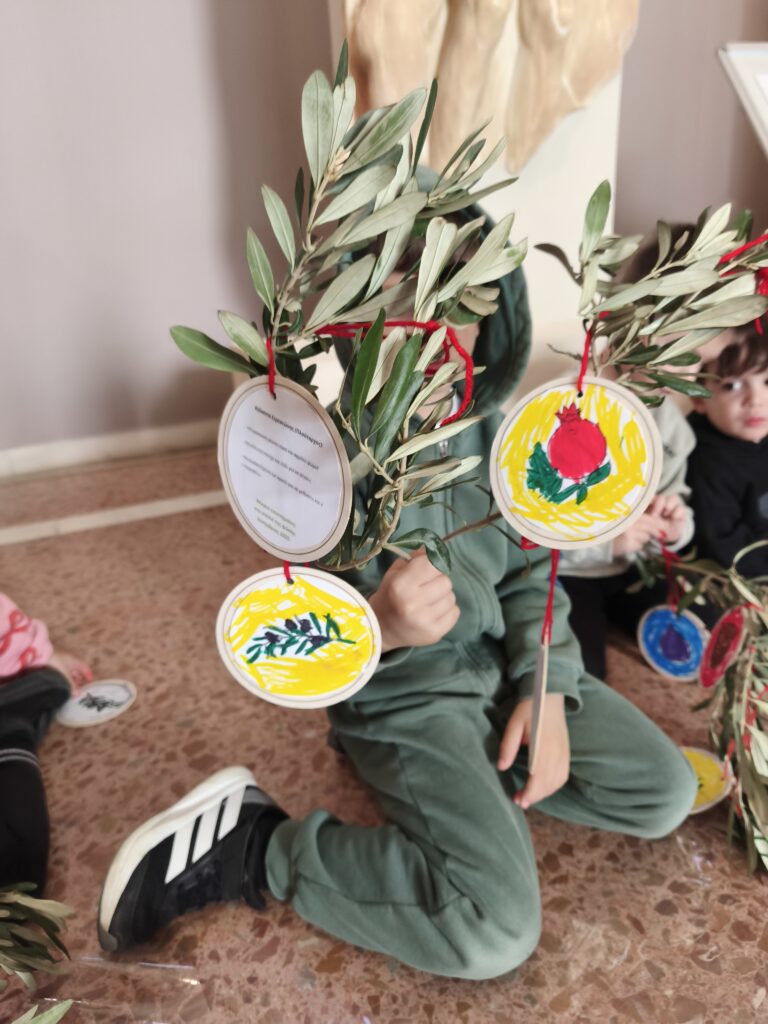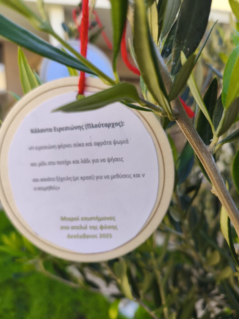 οι μικροί επιστήμονες στολίζουν κλαδιά ελιάς και γιορτάζουν σαν άλλοτε στη μηχανή του χρόνου, τραγουδάνε τα κάλαντα της Ειρεσιώνης και περιμένουν το μικρό Χριστό στην φάτνη …..