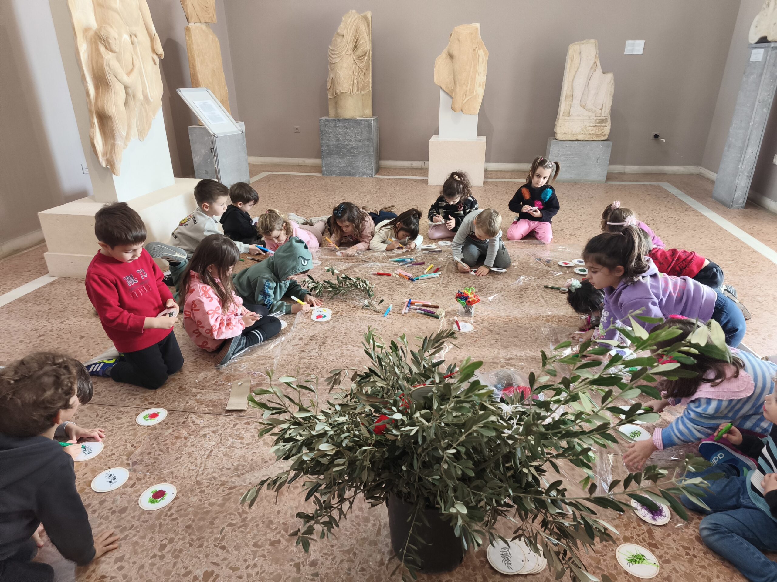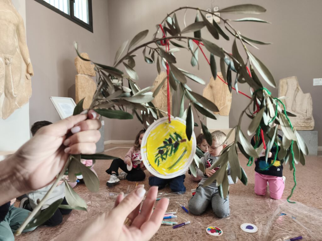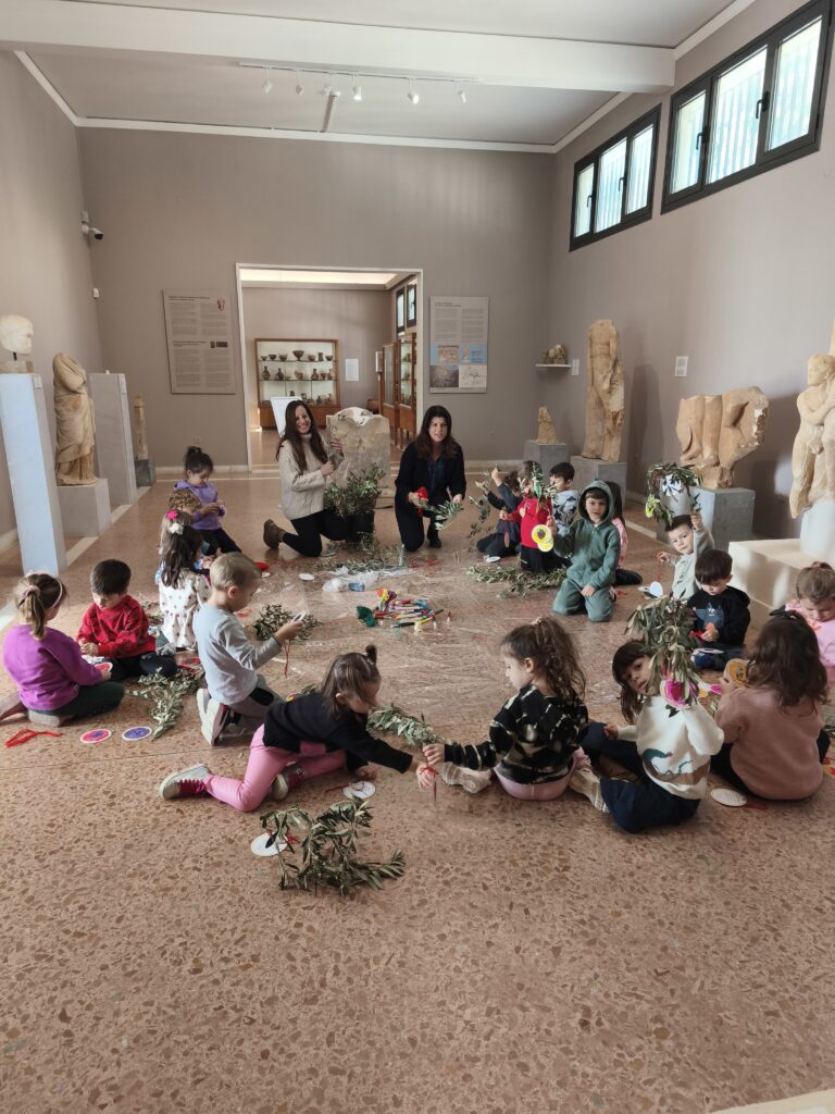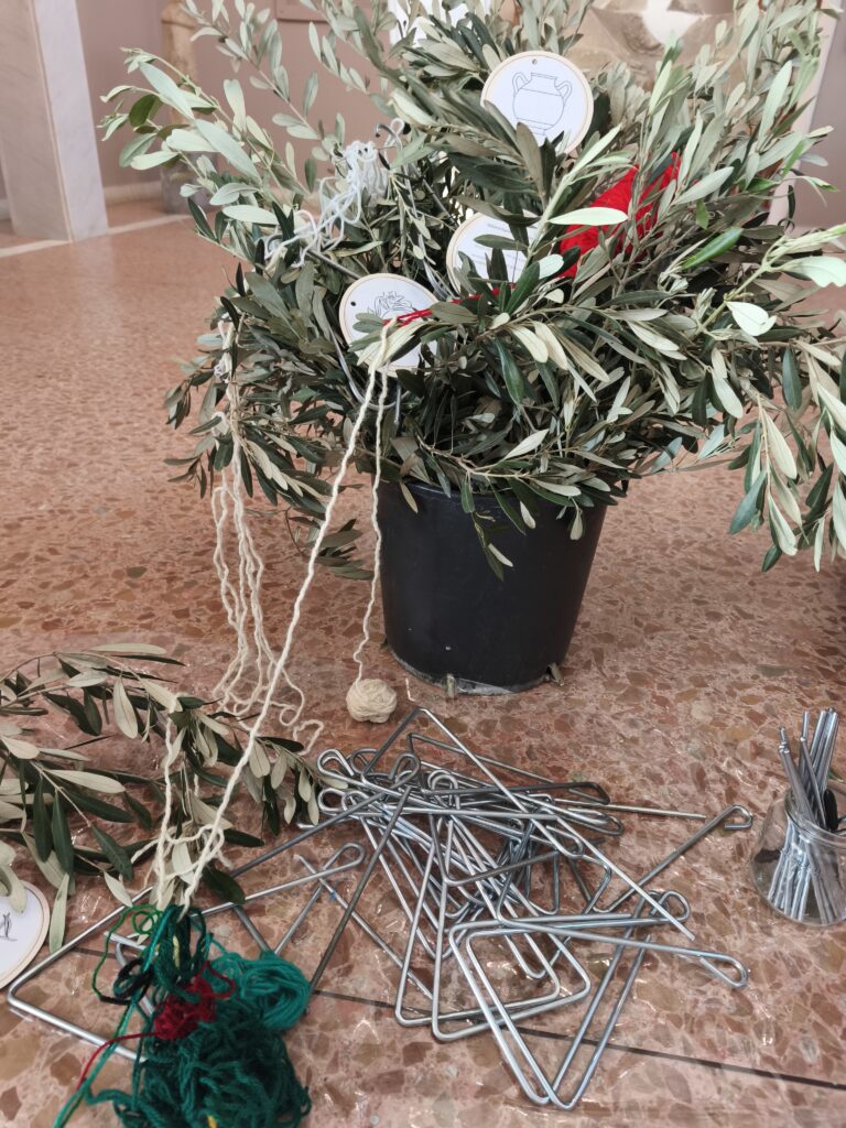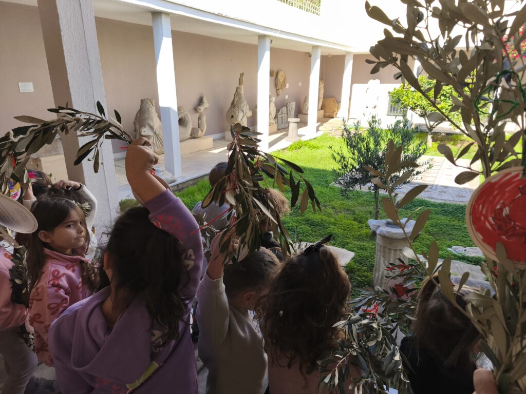 οι μικροί επιστήμονες στολίζουν κλαδιά ελιάς και γιορτάζουν σαν άλλοτε στη μηχανή του χρόνου, τραγουδάνε τα κάλαντα της Ειρεσιώνης και περιμένουν το μικρό Χριστό στην φάτνη …..