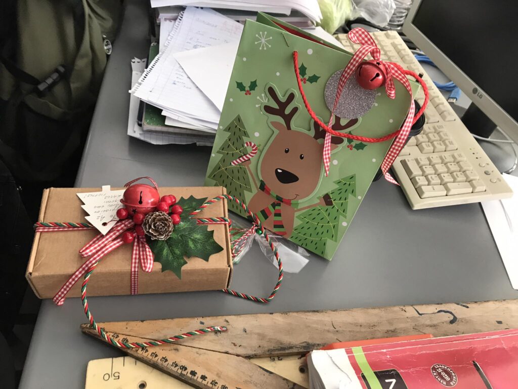 Μοίρασαν σε όλους χειροποίητα στολίδια για δέντρο, κέρασαν κουλουράκια και προσέφεραν επίσης δύο πολύ ωραία γούρια για τα γραφεία.