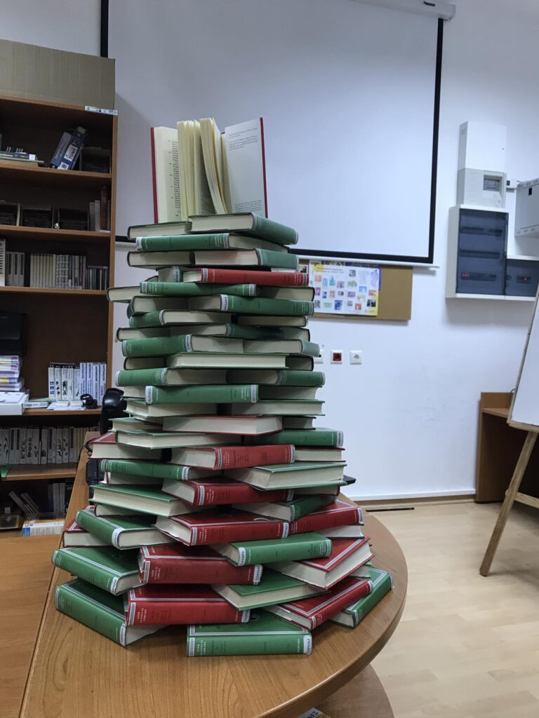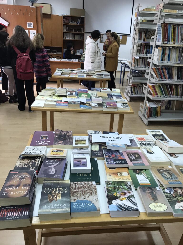 Την ίδια ώρα οι υπεύθυνες καθηγήτριες Ε. Λαμπάκη και Μ. Νάζου με τα παιδιά των ομίλων Ποίησης και Δημιουργικής Ανάγνωσης – Γραφής συμμετείχαν στην πανελλήνια δράση “Χάρισε ένα βιβλίο – δυνάμωσε το φως”, με την έκθεση βιβλίου της Βιβλιοθήκης του Γυμνασίου. Πλήθος μαθητών, καθηγητές αλλά και γονείς επισκέφθηκαν τη Βιβλιοθήκη και δανείστηκαν βιβλία, παίρνοντας αναμνηστικό σελιδοδείκτες που ετοίμασαν μαθητές του σχολείου σε συνεργασία με την κ. Κλαυδιανού.