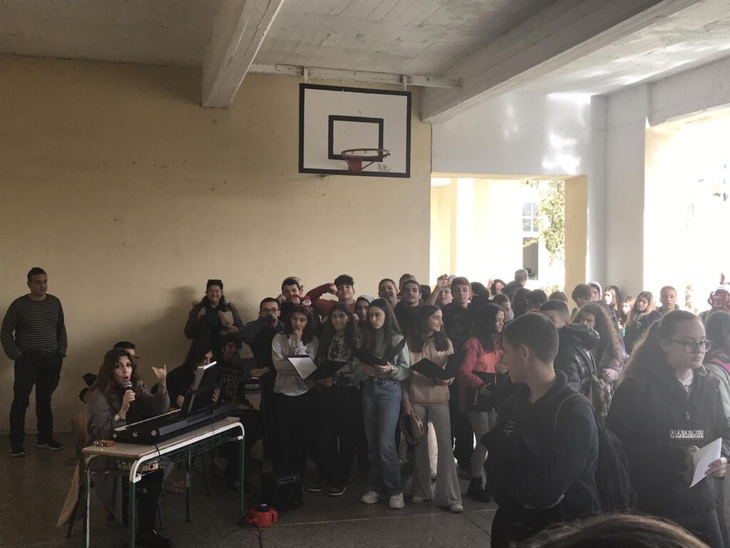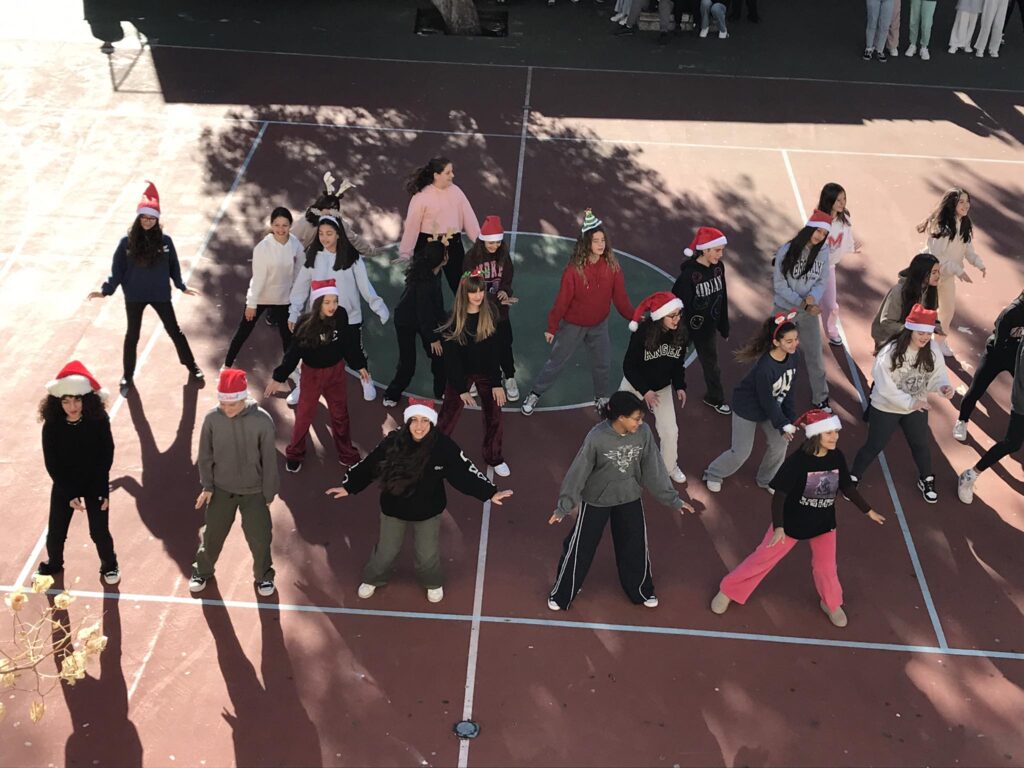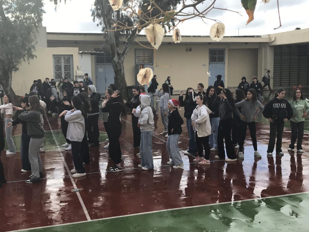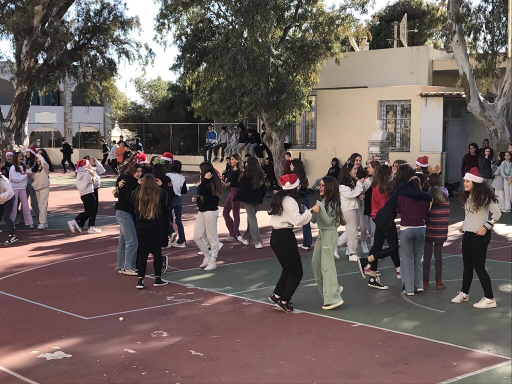 Στη συνέχεια οι μαθήτριες της Α’ και Β΄ τάξης παρουσίασαν δύο χορευτικά σε χριστουγεννιάτικα τραγούδια, που προετοίμασε η καθηγήτρια Φυσικής Αγωγής κ. Σταμάτη.