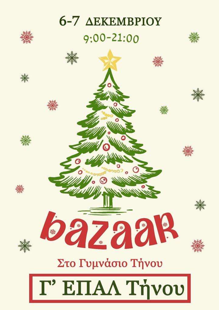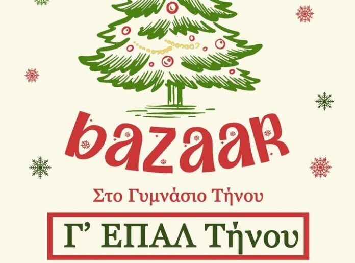 Bazaar από τους μαθητές της Γ’ Επαγγελματικού Λυκειου Τήνου από σήμερα Σάββατο, 06 Δεκεμβρίου έως και αύριο Κυριακή, 07 Δεκεμβρίου. Ώρες 09.00 έως 21.00