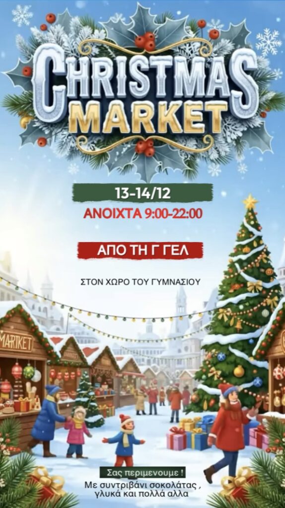 Χριστουγεννιάτικο παζάρι από την Γ’ τάξη του Γενικού Λυκείου Τήνου, στον χώρο του Γυμνασίου. Σάββατο, 13 και Κυριακή, 14 Δεκεμβρίου από τις 09.00 – 22.00
