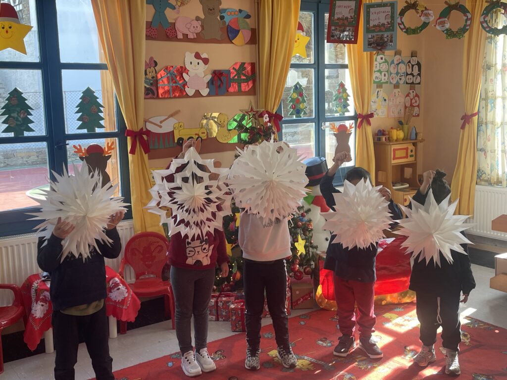Τα παιδιά συμμετείχαν ενεργά σε μια εορταστική δράση χειροτεχνίας, κατασκευάζοντας χριστουγεννιάτικα έργα με απλά υλικά, στο χώρο του νηπιαγωγείου.