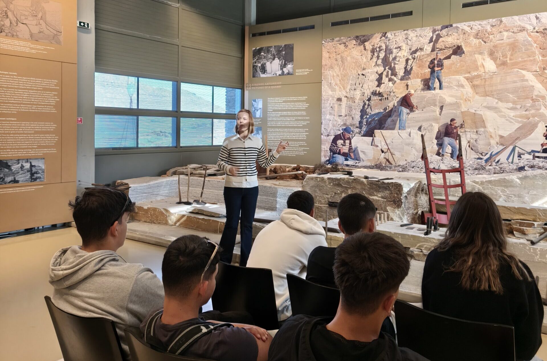 Ευχαριστούμε ιδιαιτέρως την κυρία Κατερίνα Λαμέρα, υπάλληλο του Μουσείου, η οποία ανέλαβε την ξενάγηση των μαθητών μας. Η κα Λαμέρα με τον επαγγελματισμό, τη μεταδοτικότητα και τον ενθουσιασμό της, κατάφερε να κρατήσει αμείωτο το ενδιαφέρον των παιδιών, μετατρέποντας την επίσκεψη σε μια άκρως διδακτική και αξέχαστη εμπειρία. Η ικανότητά της να εξηγεί πολύπλοκες έννοιες με απλό και ελκυστικό τρόπο είναι πραγματικά αξιέπαινη.