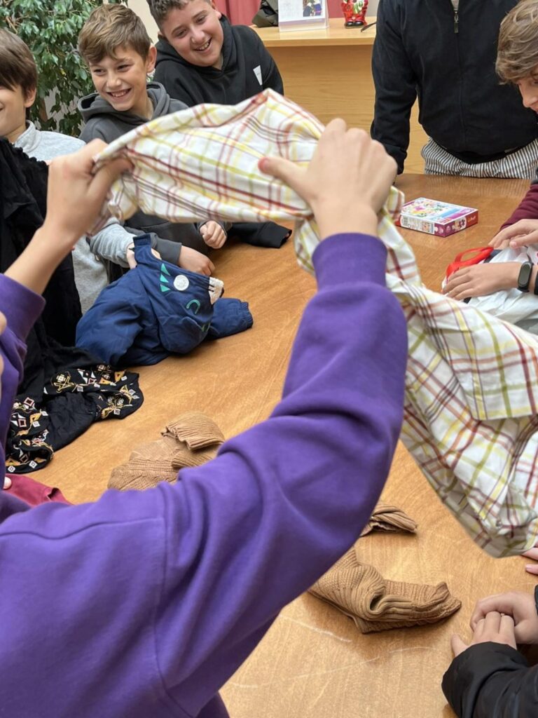 Ο κ. Αντώνης Δελατόλας και οι συνεργάτες του μας υποδέχτηκαν θερμά κι έπειτα από εκτενή παρουσίαση του έργου τους καθοδήγησαν τους μαθητές ώστε να βιώσουν την εμπειρία του εθελοντισμού μέσα από την ταξινόμηση και συσκευασία των ρούχων που φέρνουν στον οργανισμό οι πολίτες.