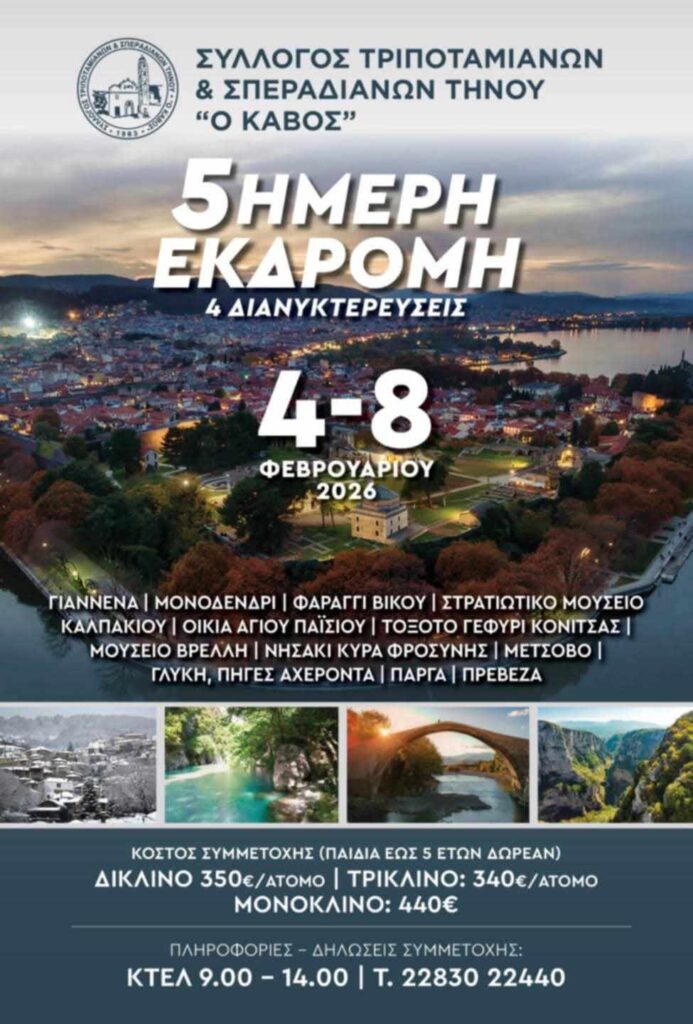 Γιάννενα · Μονοδένδρι · Φαράγγι Βίκου · Στρατιωτικό Μουσείο Καλπακίου · Οικία Αγίου Παϊσίου · Τόξοτο Γεφύρι Κόνιτσας · Μουσείο Βρέλλη · Νησάκι Κυρά Φροσύνης · Μέτσοβο · Γλύκη, Πηγές Αχέροντα · Πάργα · Πρέβεζα