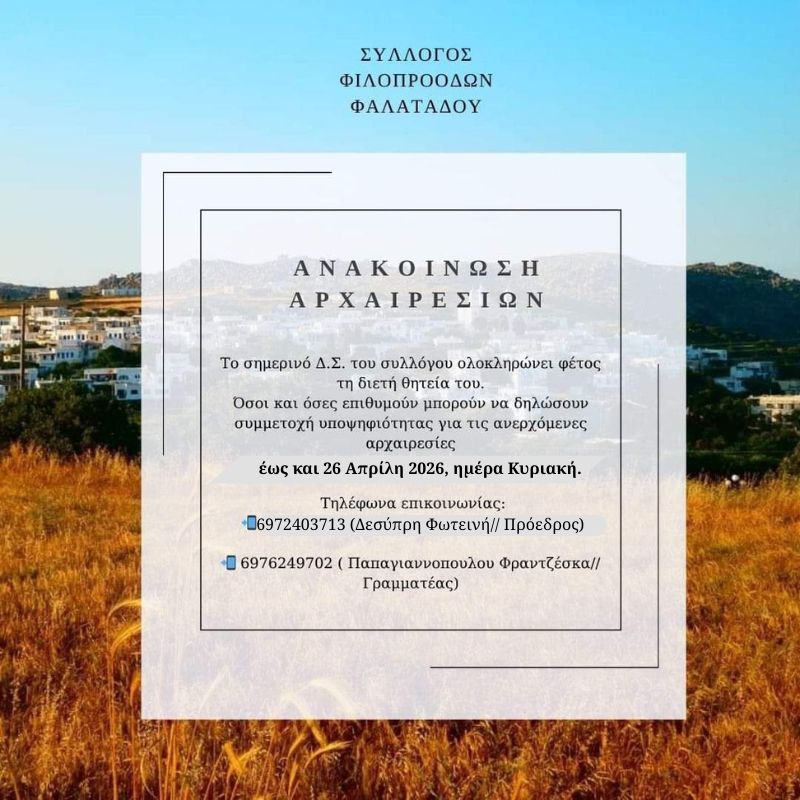 Όσοι και όσες επιθυμούν μπορούν να δηλώσουν συμμετοχή υποψηφιότητας για τις ανερχόμενες αρχαιρεσίες έως και 26 Απριλίου 2026, ημέρα Κυριακή.