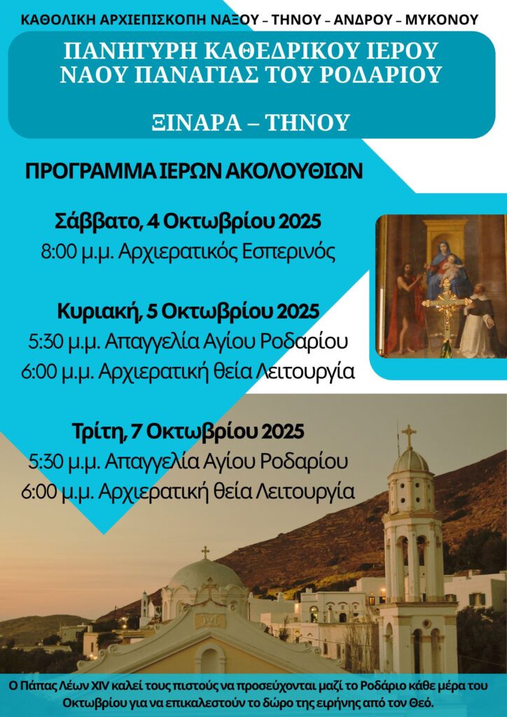Πανήγυρη Καθεδρικού Ιερού Ναού Παναγίας του Ροδαρίου Ξινάρα – Τήνου