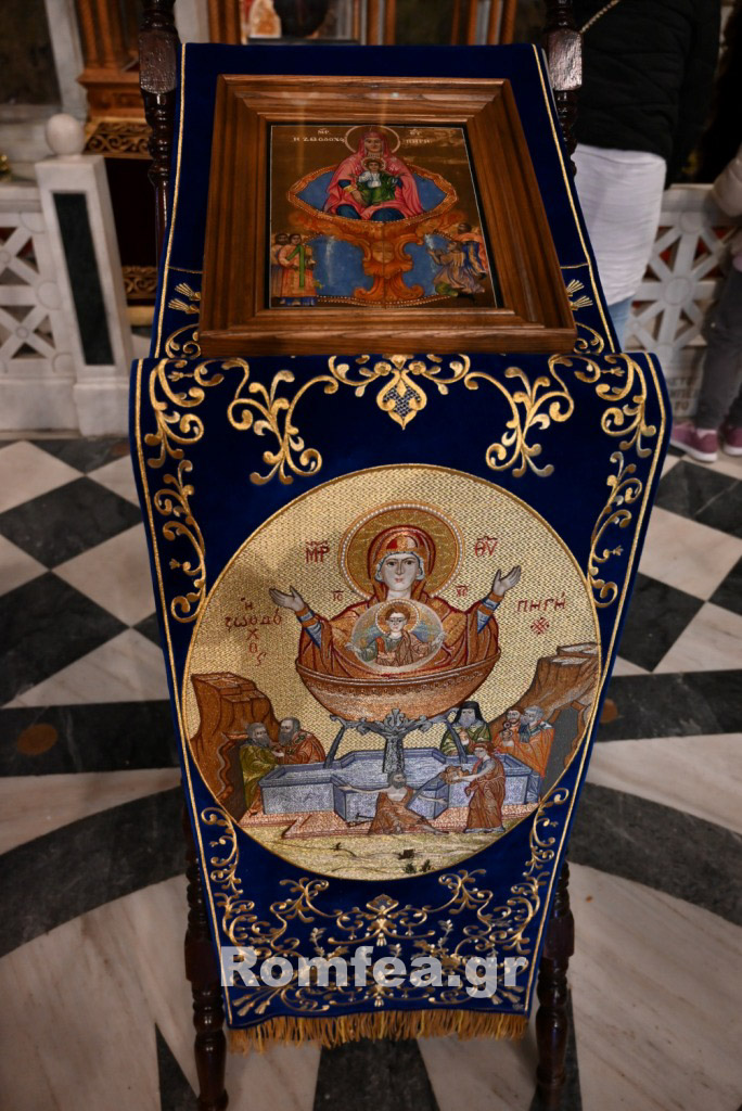 Τέλος, με εκκλησιαστική τάξη έγινε η λιτάνευση της Ιεράς Εικόνος της Ζωοδόχου Πηγής από τον κύριο Ναό στον Ναό της Ευρέσεως της θαυματουργού Εικόνος της Μεγαλόχαρης, όπου είναι αφιερωμένος στη Ζωοδόχο Πηγή.