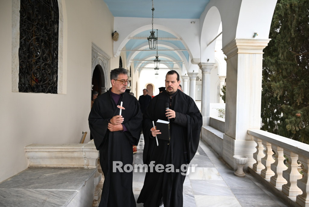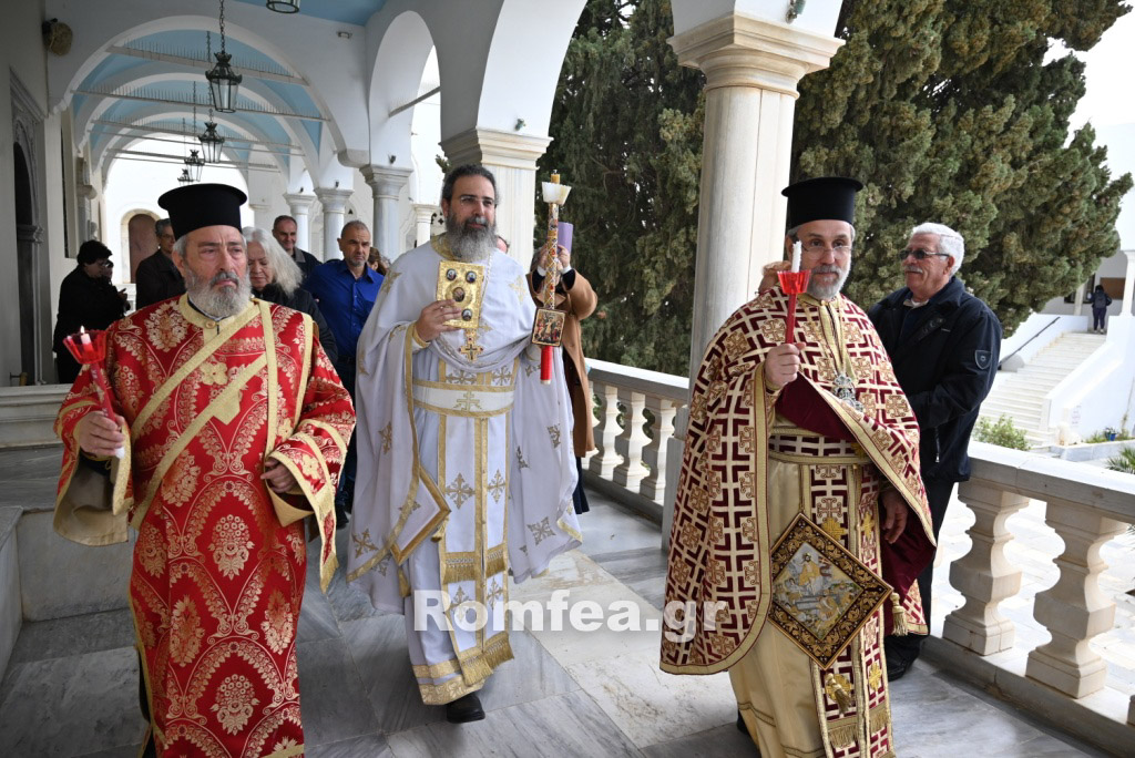 Με την τέλεση αφ’ εσπέρας του Εορτίου Εσπερινού υπό του Αρχιερατικού, του Ιεροκήρυκος ο οποίος εκήρυξε τον θείον λόγον, του Αρχιμανδρίτου και των Εφημερίων της Ιεράς Νήσου, του Αρχιδιακόνου και των Διακόνων του Πανιέρου Ναού.