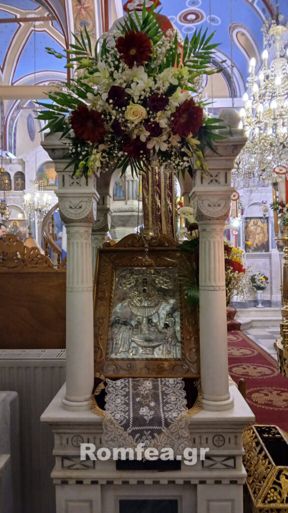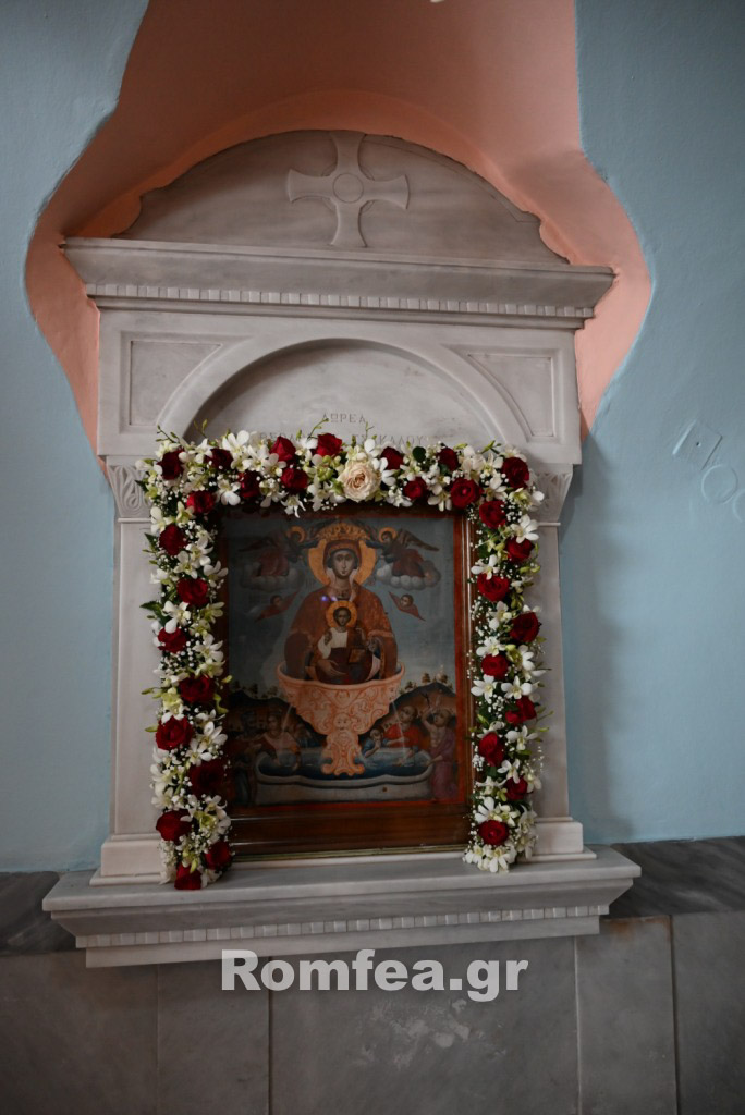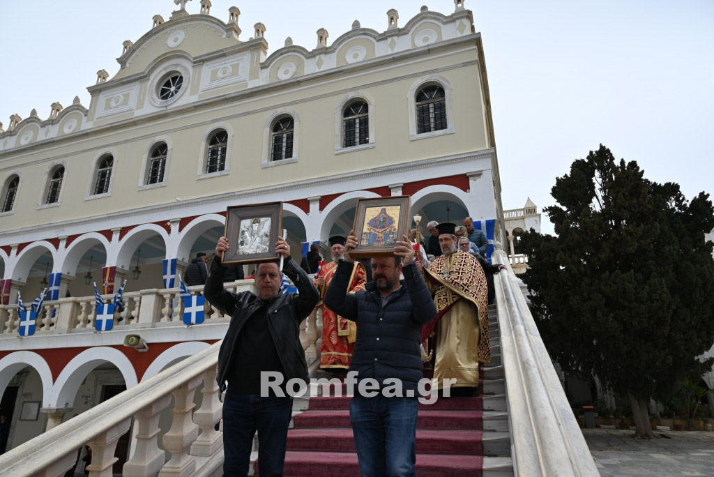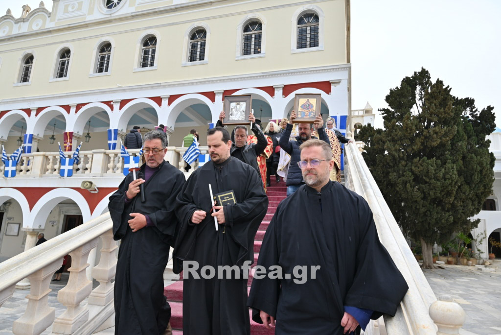Την κυριώνυμο τελέσθηκε Όρθρος και Πανηγυρική Θεία Λειτουργία υπό του π. Γεωργίου Χριστοδούλου εφημερίου Ι. Ν. Αγίας Σοφίας Νέου Ψυχικού ο οποίος εκήρυξε τον θείον λόγον, του Αρχιερατικού και του Αρχιδιακόνου και με τη συμμετοχή της Αντιπεριφερειάρχη Υγείας και Κοινωνικής Μέριμνας και Επάρχου Τήνου, του Δημάρχου, του Αντιπροέδρου της Διοικούσης Επιτροπής του Ιερού Ιδρύματος, του Αντιδημάρχου, Δημοτικών και Τοπικών Συμβούλων, του Προέδρου και των μελών του Συλλόγου Δυοχωριανών, του Αντιπεριφερειάρχη Πολιτικής Προστασίας Αττικής κ. Πολυχρονίου Μπαϊρακτάρη, και πλήθους ευλαβών Χριστιανών, προσκυνητών και Τηνίων.