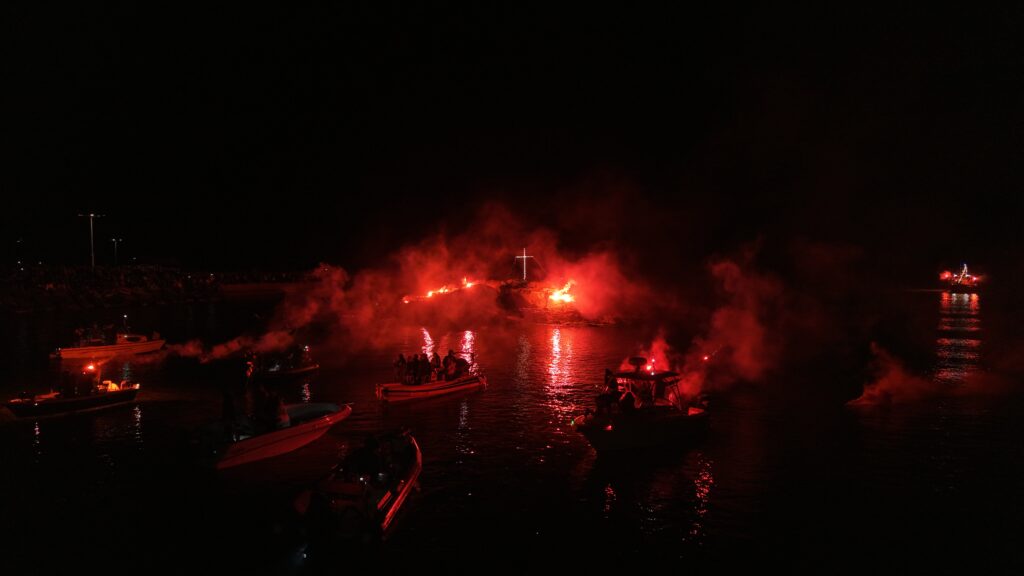Από τους πιο εντυπωσιακούς Επιτάφιους στην Ελλάδα θεωρείται αυτός της ενορίας του Αγίου Νικολάου – Αγίου Ελευθερίου στην Τήνο, αφού μετά την περιφορά του μεταφέρεται μέσα στη θάλασσα, όπου γίνεται μνημόσυνο υπέρ των νέων ανθρώπων που χάθηκαν άδικα στην «υγρή αγκαλιά» της.