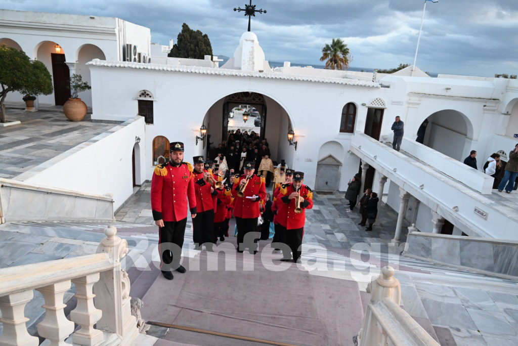 Ο Αρχιερατικός Επίτροπος της ιεράς νήσου Τήνου, μετέφερε τις ευχές και ευλογίες του Σεβ. κ. Δωροθέου Β’ και ευχαρίστησε, τον π. Εφραίμ Παναούση και τους συμμετέχοντες, όλο τον Κλήρο της ιεράς νήσου, την Ηγουμένη της Ιεράς Μονής Κεχροβουνίου και την περί αυτήν Μοναστική Αδελφότητα, τον Αντιπρόεδρο της Διοικούσης Επιτροπής του Ιερού Ιδρύματος, τον Πρόεδρο του Δημοτικού Συμβουλίου, τον Λιμενάρχη Τήνου, τον Αναπληρωτή Διοικητή του ΑΤ Τήνου, τον Διοικητή του Πυροσβεστικού Κλιμακίου Τήνου, τους Δημοτικούς Συμβούλους, τα μέλη της Διοικούσης Επιτροπής του ΠΙΙΕΤ, τους Κληρικούς της Ιεράς νήσου Τήνου, τους εκκλησιαστικούς επιτρόπους, τους ιεροψάλτες, τους διακονητές και τους υπηρετούντας εν το Ιερό Ιδρύματι, τον Γεώργιο Πολυκανδρίτη για την κάλυψη των φωτογραφιών, τον κ. Λουκά Τριανταφυλλόπουλο για την διαδικτυακή υποστήριξη, τους τεχνικούς του Ραδιοφωνικού σταθμού της Ιεράς Μητροπόλεως Σύρου 95.4FM όπου μεταδίδουν τις Ιερές Ακολουθίες, τον ιστότοπο tinos today και τους Νέστορα Βιδάλη και Ευάγγελο Ζαλώνη για την διαδικτυακή αναμετάδοση, τους εκπροσώπους Συλλόγων και Φορέων του νησιού και τους ευλαβείς Χριστιανούς που συνέρρευσαν από όλο το νησί αλλά και από άλλα μέρη της Ελλάδος.