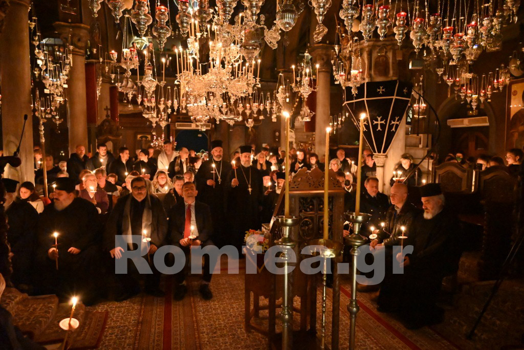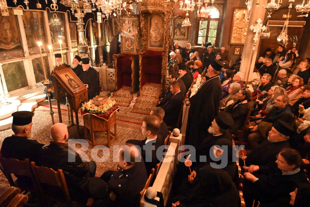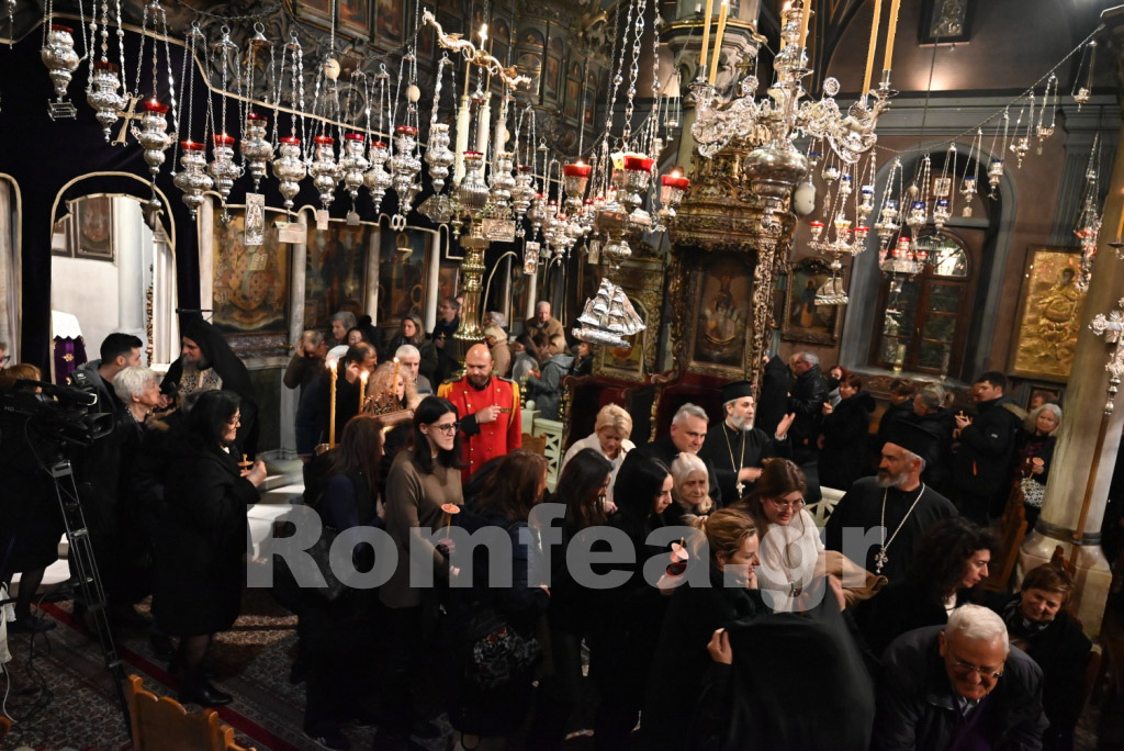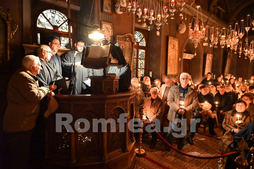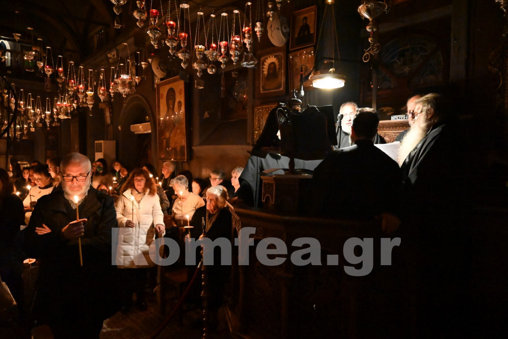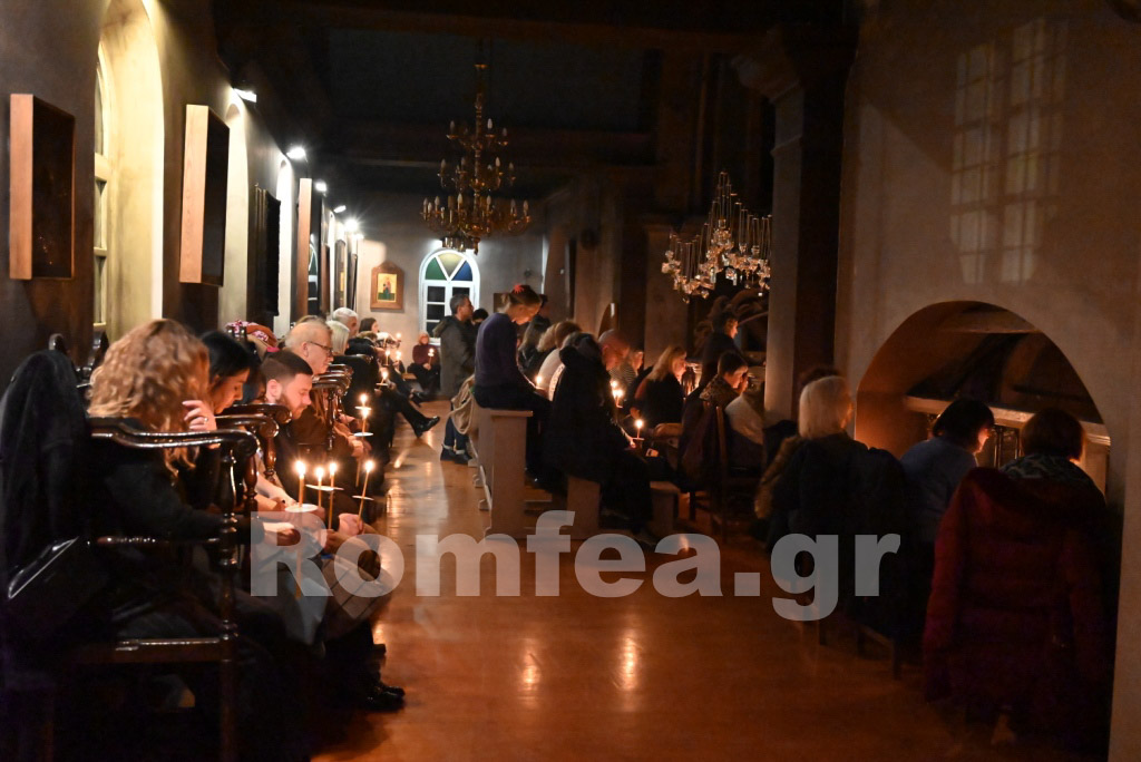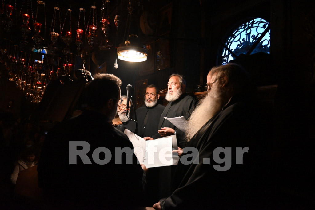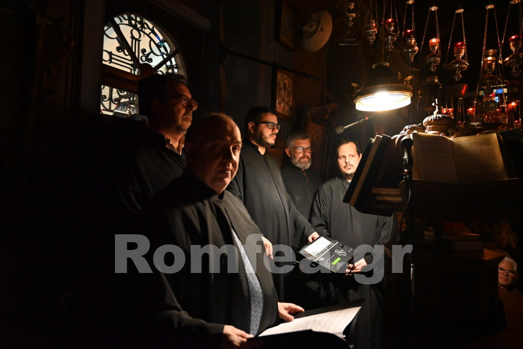 Όλος ο Ναός φωταγωγήθηκε από τα εκατοντάδες καντήλια και τους πολυελέους, ενώ οι χοροί, των ιεροψαλτών στο δεξιό αναλόγιο υπό την διεύθυνση του Πρωτοψάλτη κ. Μάριου Κυριάκου και των Εφημερίων της Ιεράς Νήσου υπό τη διεύθυνση του Ιερολ. Αρχιδιακόνου Αντ. Τζανουλίνου στο αριστερό, αποδίδοντας τα μουσικά μέλη κατά τρόπο λιτό και κατανυκτικό, εισήγαγαν τους πιστούς στο χαρμόλυπο στάδιο των αρετών κατά τρόπο ιεροπρεπή.