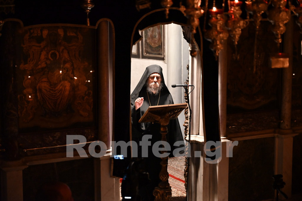 Ομιλητής κατά τον Εσπερινό ήταν ο Πανοσιολογιώτατος Αρχιμανδρίτης Εφραίμ Παναούσης, Ηγούμενος της Συνοδικής Ιεράς Μονής Παναγίας Χρυσοπηγής, προσκεκλημένος του Σεβασμιωτάτου κ. Δωροθέου, ο οποίος ομίλησε θεολογικότατα και διδακτικότατα αναλύοντας το θέμα: «Η Δικαιοσύνη των ανθρώπων και η Δικαιοσύνη του Θεού».