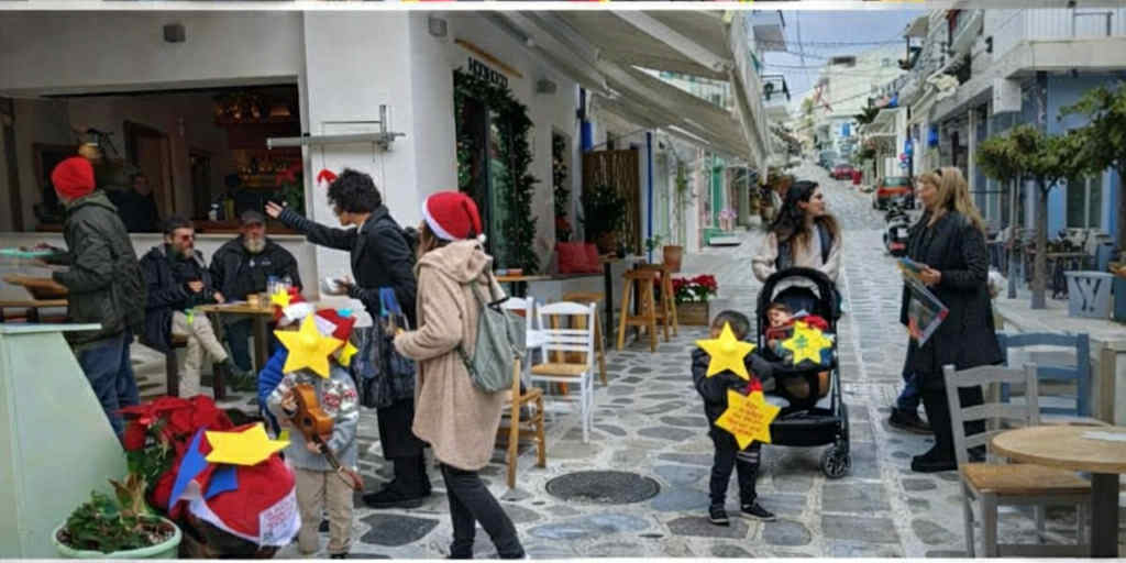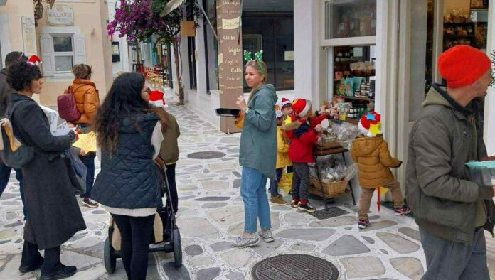 Ακολούθησε ένα γλυκό μοίρασμα στον εμπορικό δρόμο και στα καταστήματα του νησιού, γεμάτο χαμόγελα και αγάπη.