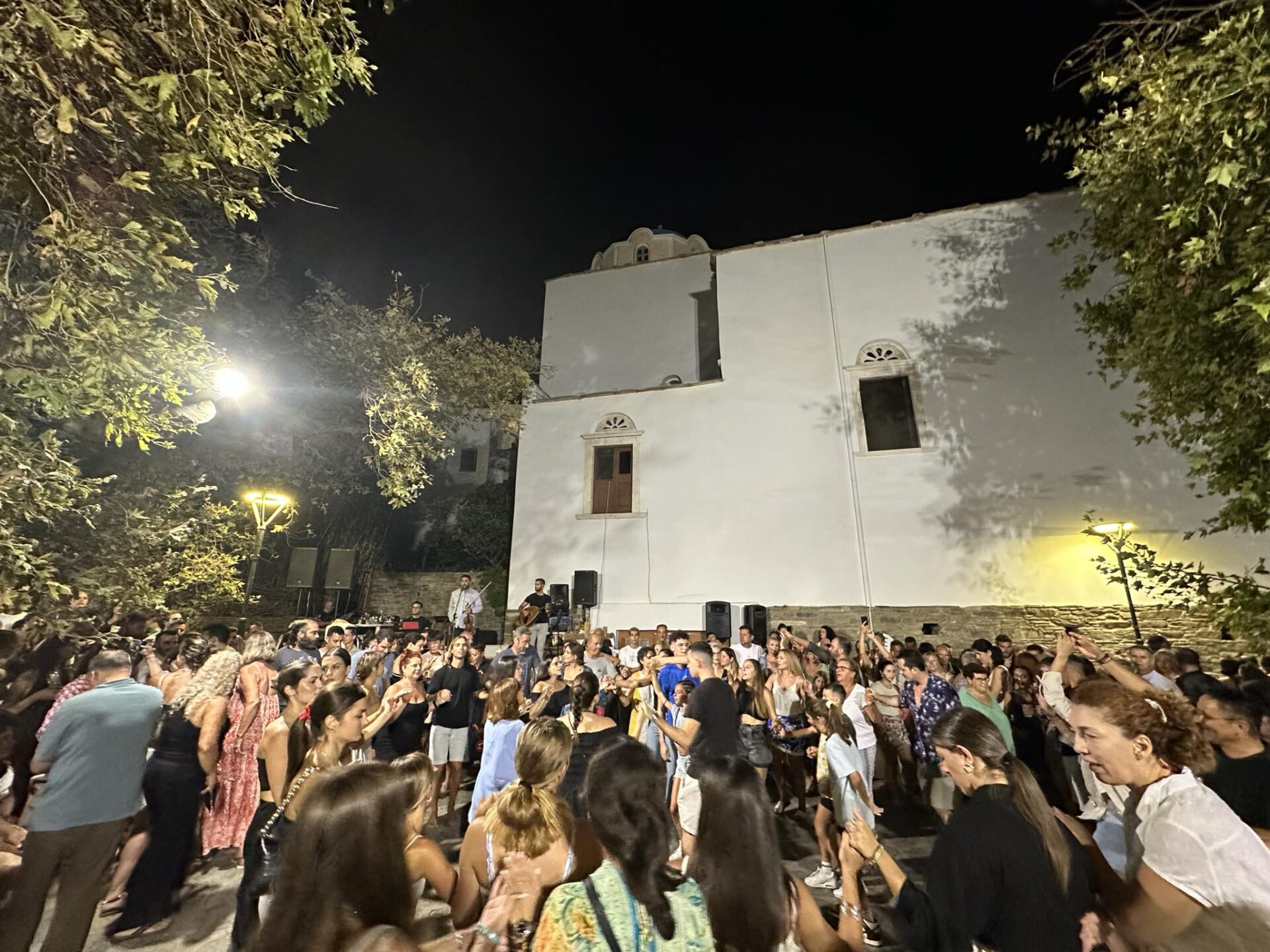 Η βραδιά ήταν γεμάτη παραδοσιακούς χορούς, κέφι και διασκέδαση, με τους παρευρισκόμενους να συμμετέχουν ενεργά και να γεμίζουν την πλατεία με χαμόγελα και τραγούδια.