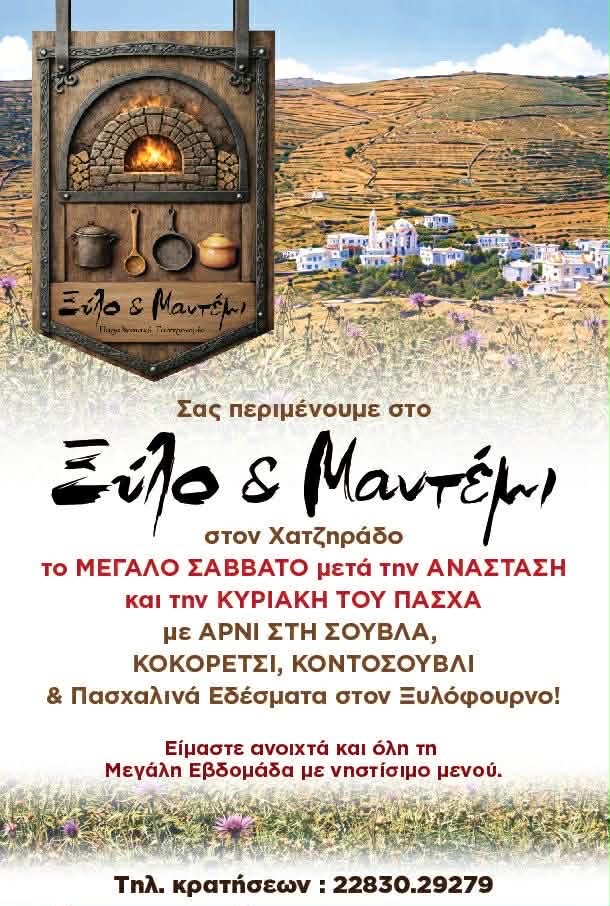 Την Κυριακή του Πάσχα, σας περιμένουμε με αυθεντικές γεύσεις στη σούβλα: αρνί, κοκορέτσι και κοντοσούβλι, καθώς και εκλεκτά πασχαλινά εδέσματα ψημένα στον ξυλόφουρνο.