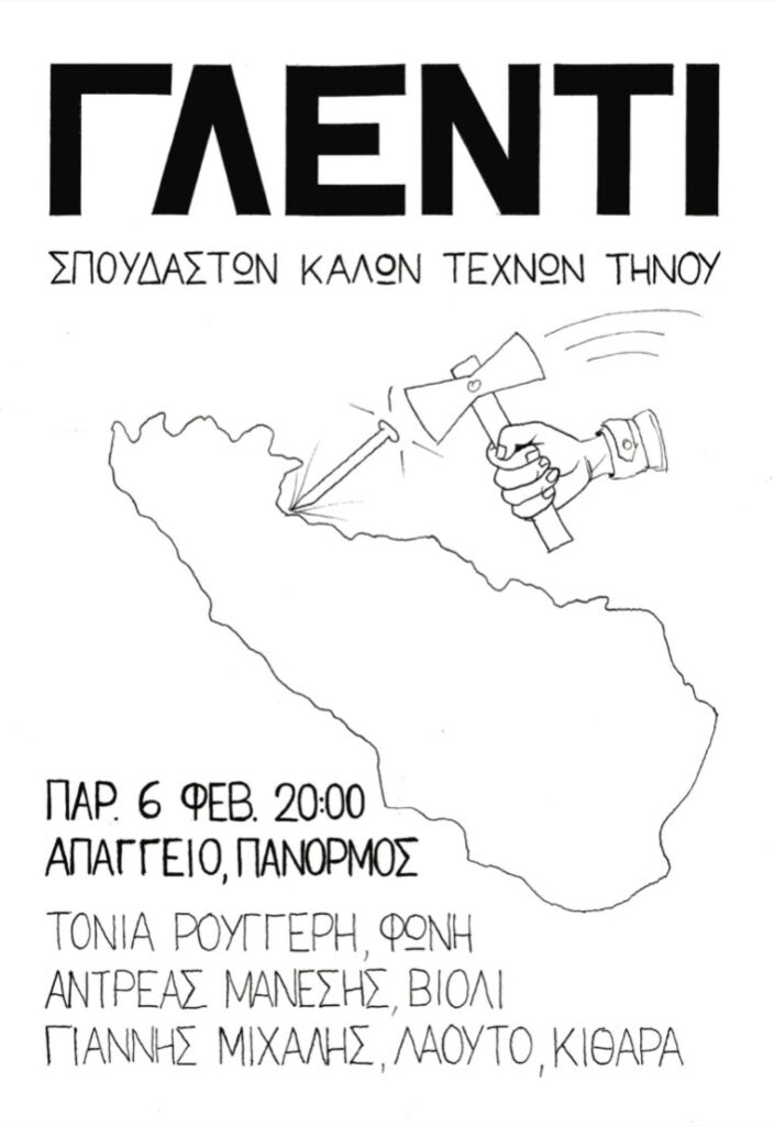 Την Παρασκευή, 06 Φεβρουαρίου στο Απάγγειο, στον Πάνορμο Τήνου οι σπουδαστές της Σχολής Καλών Τεχνών Τήνου σας προσκαλούν στο γλέντι που διοργανώνουν στις 20.00