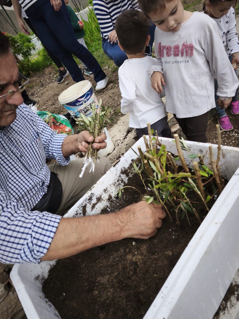 Με άψογη συμπεριφορά και συνεργασία μεταξύ τους και τον Πρόεδρό μας, εκπαιδευτικό,  αρχικά δημιούργησαν  μείγμα κατάλληλο για να φυτευτούν  φυτά,   ( φυτόχωμα με άμμο, περλίτη και κομπόστ) και γέμισαν με το παραπάνω μείγμα μικρές πρασιές από φελιζόλ . Ακολούθως χρησιμοποίησαν μικρά νεαρά κλαδιά μήκους 15-20εκ. από (πικροδάφνη), τα οποία μετά από εμποτισμό στην κάτω άκρη τους με φυτοορμόνη ριζοβολίας , τα φύτεψαν (βύθισαν)  κατά τα δυο/τρίτα,  μέσα στο μείγμα σε σειρές και στήλες και τα πότισαν,.