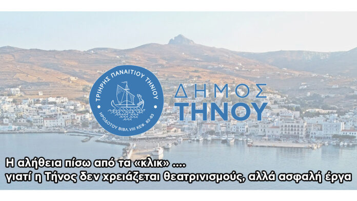 Όσο οι γνωστοί άλλοι “ποντάρουν” στις ζημιές και στις φωτογραφίες, εμείς, σαν υπεύθυνη Δημοτική Αρχή, θα συνεχίσουμε να δίνουμε τόσο την μάχη της καθημερινότητας, όσο και κάθε μάχη εκτάκτου ανάγκης για την Τήνο μας.