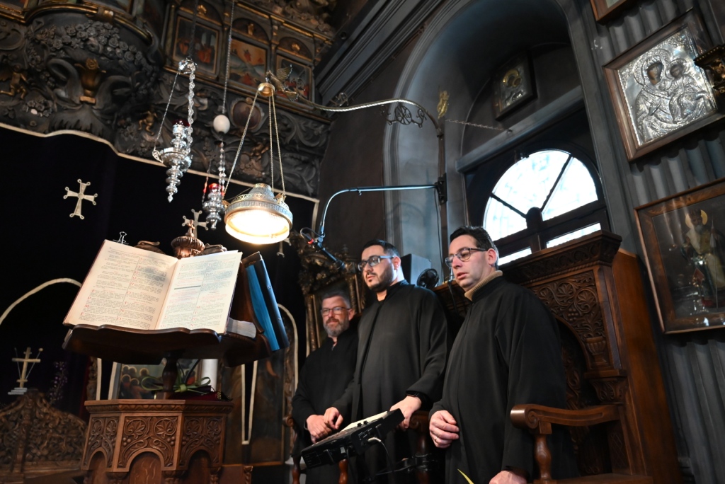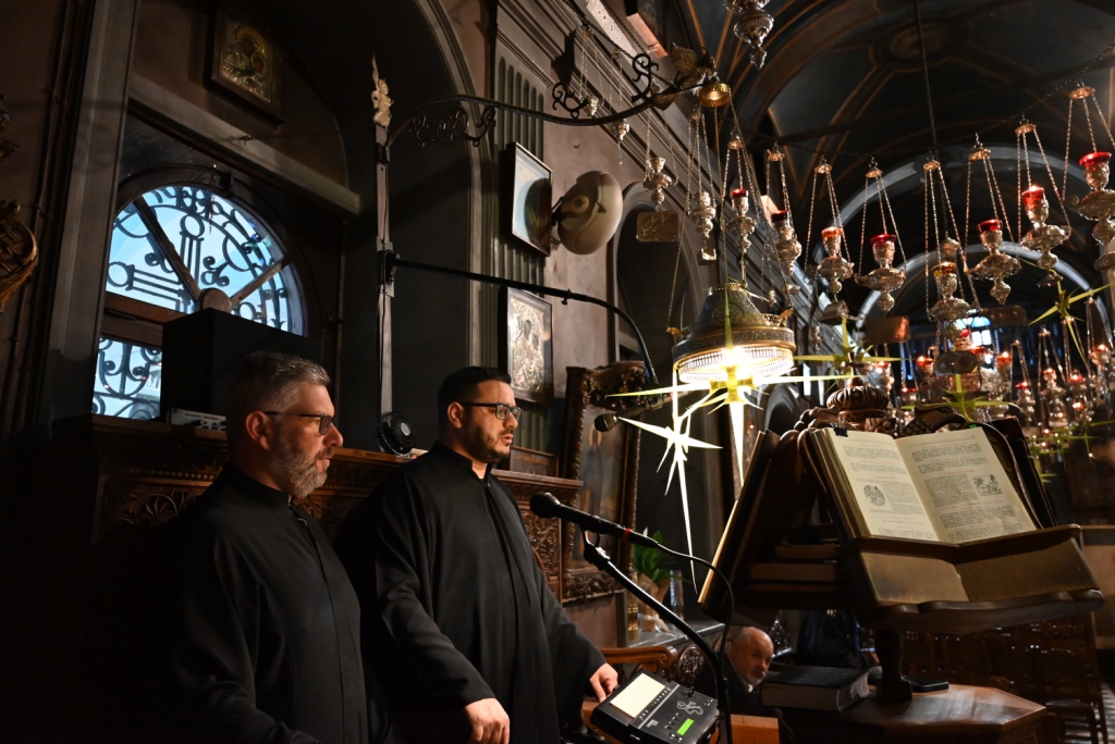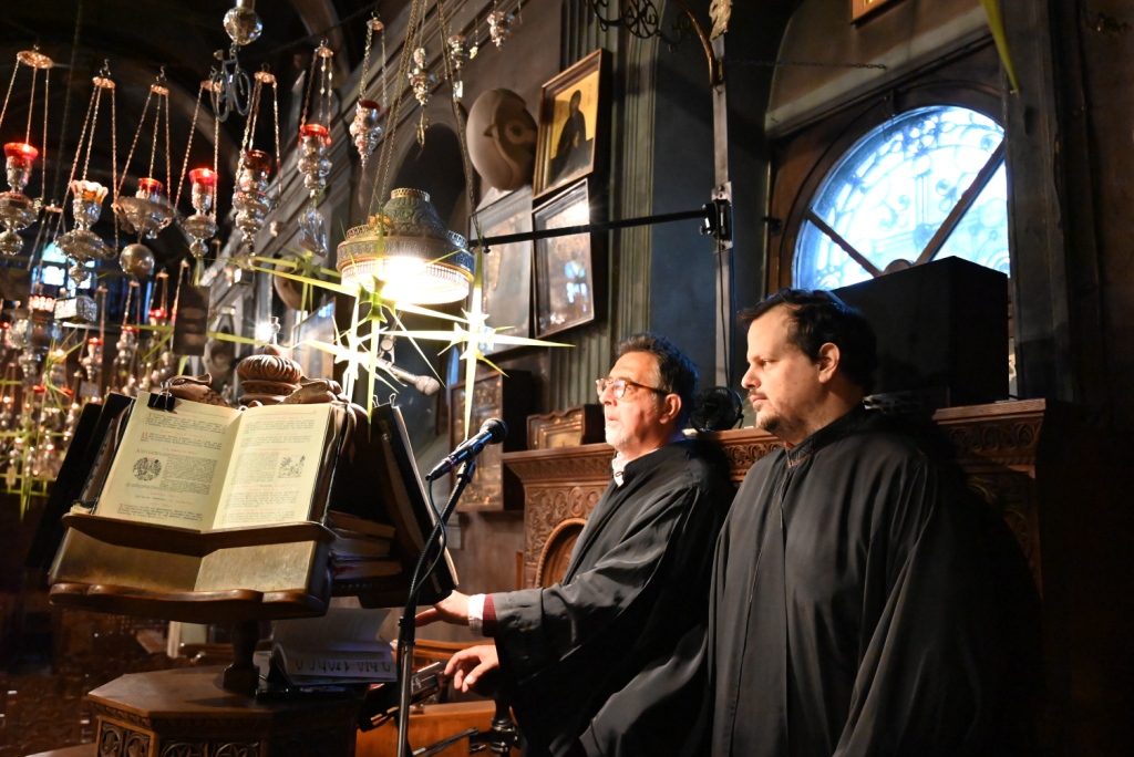 Τους εκκλησιαστικούς ύμνους απέδωσαν οι χοροί των ιεροψαλτών του Πανιέρου Ναού υπό τη διεύθυνση του Πρωτοψάλτη κ. Μάριου Κυριάκου.