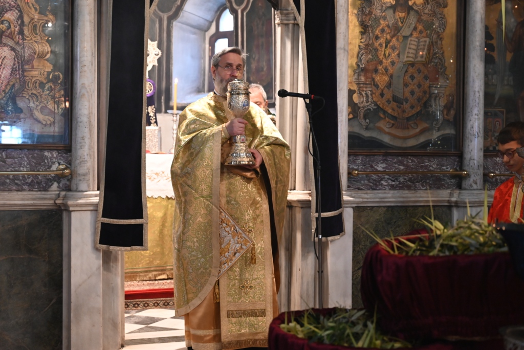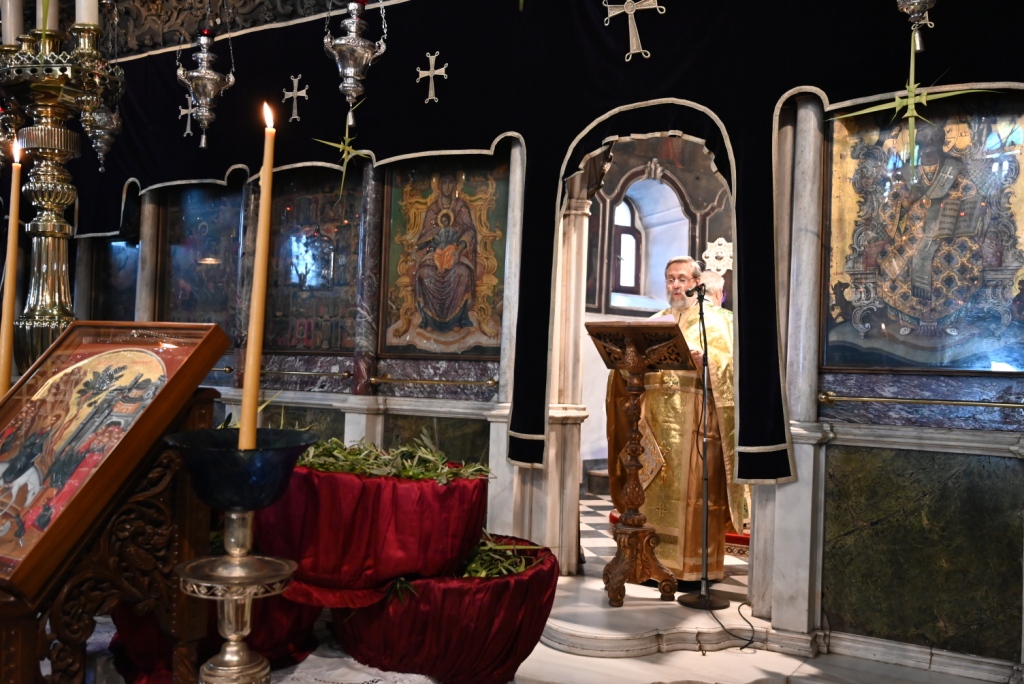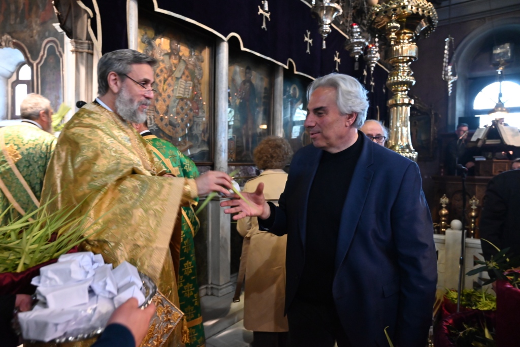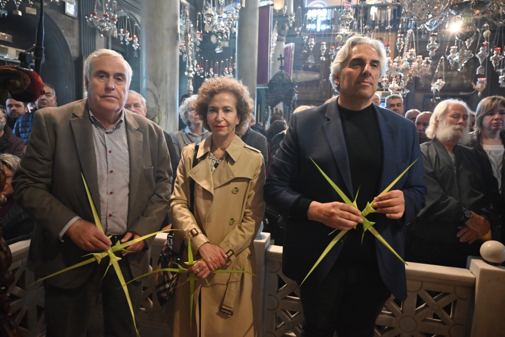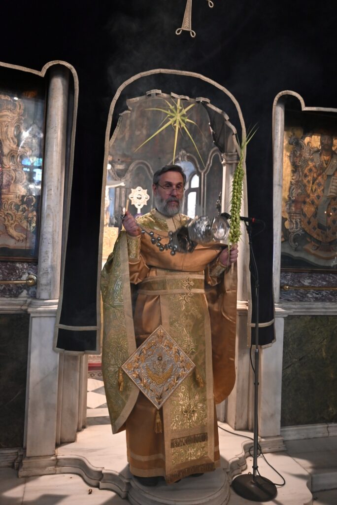 Ο Αρχιερατικός Επίτροπος της Ιεράς νήσου, μετέφερε τις ευχές και ευλογίες του Σεβασμιωτάτου Ποιμενάρχου κ. Δωροθέου Β΄ και ευχήθηκε καλή Αγία και Μεγάλη Εβδομάδα, καλή Ανάσταση και όπως είπε χαρακτηριστικά: «όλοι μας, να κρατήσουμε άσβεστη τη σημερινή χαρά και ας υποδεχτούμε τον Χριστό αληθινά ως βασιλέα και Θεό, γνωρίζοντας ότι όπως μετά το Πάθος Του ακολούθησε η Ανάστασή Του, έτσι ακριβώς και μετά από τον σταυρό που καλούμαστε στη ζωή μας να σηκώσουμε, αν δεν ολιγοπιστήσουμε και δεν Τον αρνηθούμε, θα επακολουθήσει και η δική μας, προσωπική Ανάσταση».