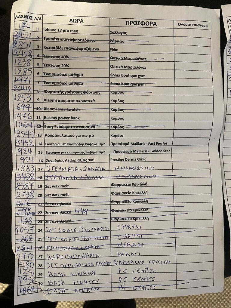 Ο Σύλλογος Απανταχού Κεχριανών Τήνου “Παναγία Ξεσκλαβώτρα” ευχαριστεί όσους συμμετείχαν στο χθεσινό γεύμα αγάπης. Οι τυχεροί λαχνοί που δεν έχουν βρεθεί οι νικητές είναι οι ακόλουθοι της φωτογραφίας.