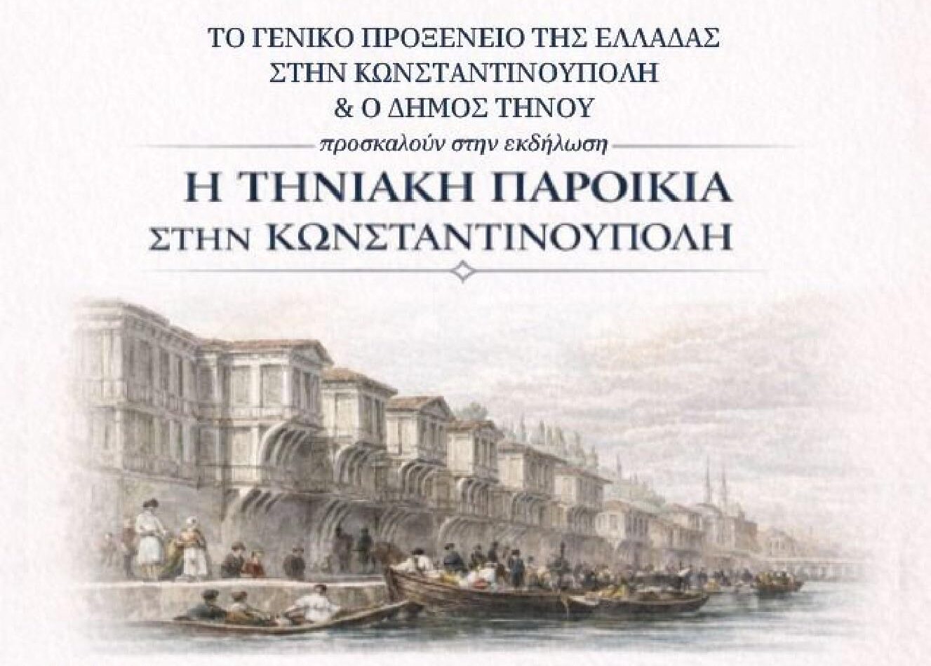 Η εκδήλωση τελεί υπό την αιγίδα της Βουλής των Ελλήνων και αποτελεί μια μοναδική ευκαιρία να γνωρίσουμε την ιστορία, την κουλτούρα και τη διαχρονική παρουσία της Τηνιακής παροικίας στην Κωνσταντινούπολη