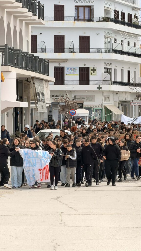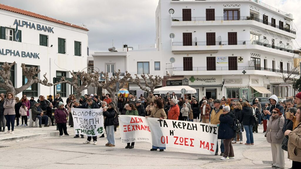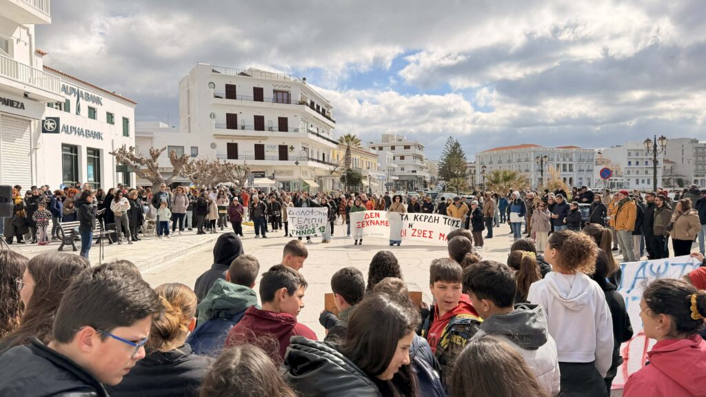 Τρία χρόνια συμπληρώνονται σήμερα από την τραγωδία των Τεμπών, με την Τήνο να συμμετέχει στις κινητοποιήσεις μνήμης που πραγματοποιήθηκαν σε όλη τη χώρα, με το σύνθημα «Το έγκλημα δεν θα ξεχαστεί».