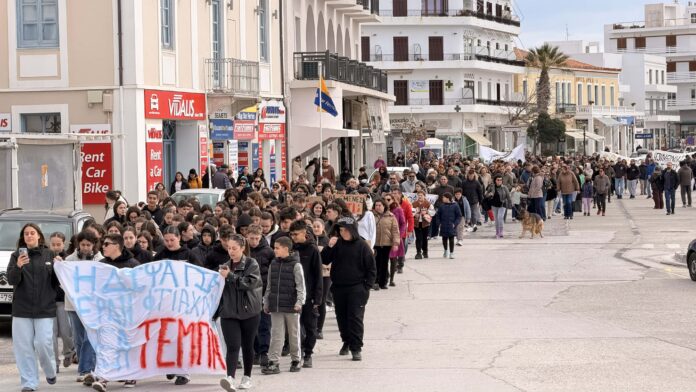 Τρία χρόνια συμπληρώνονται σήμερα από την τραγωδία των Τεμπών, με την Τήνο να συμμετέχει στις κινητοποιήσεις μνήμης που πραγματοποιήθηκαν σε όλη τη χώρα, με το σύνθημα «Το έγκλημα δεν θα ξεχαστεί».