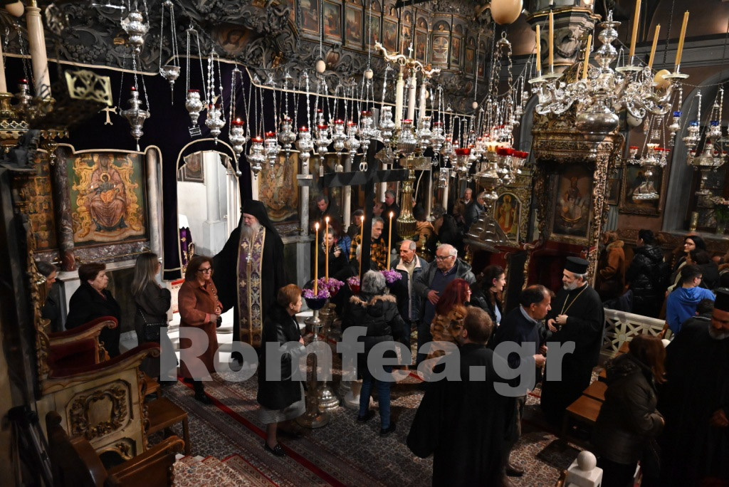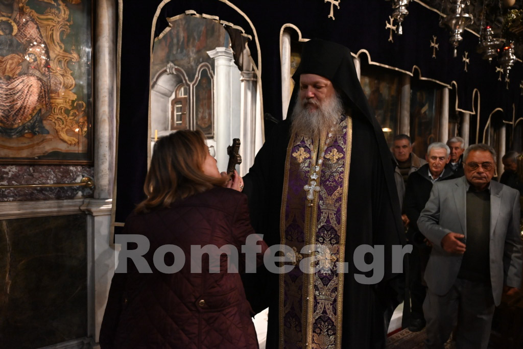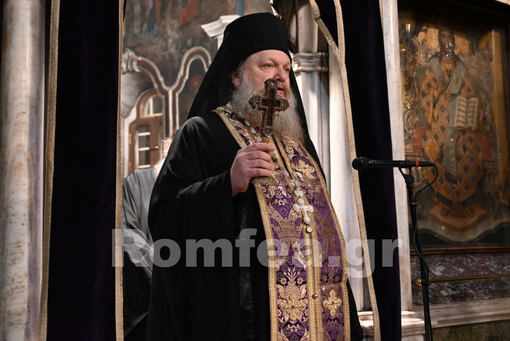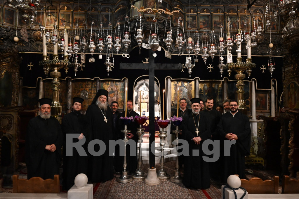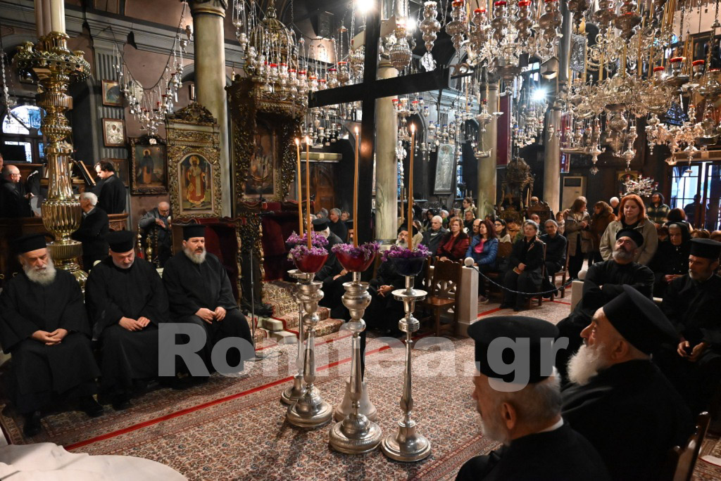Εν συνεχεία εψάλλησαν οι Χαιρετισμοί προς τον Τίμιο Σταυρό υπό του Ιεροκήρυκος του Πανιέρου Ναού.