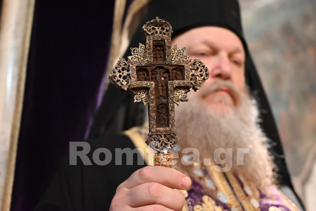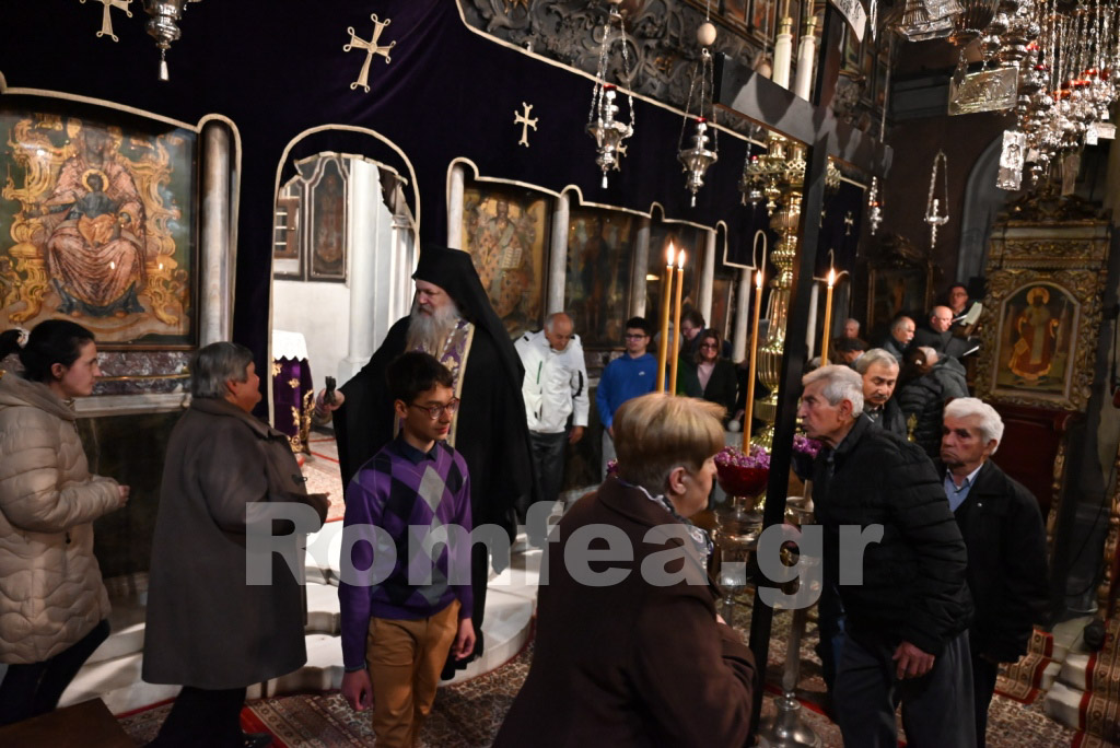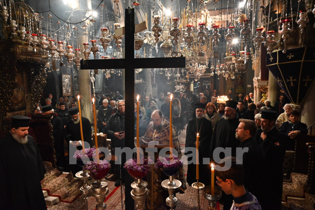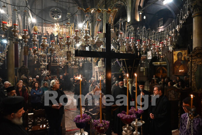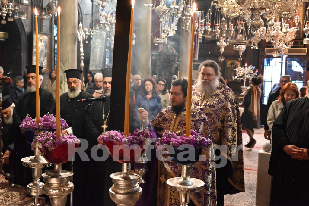 Εν συνεχεία εψάλλησαν οι Χαιρετισμοί προς τον Τίμιο Σταυρό υπό του Ιεροκήρυκος του Πανιέρου Ναού.
