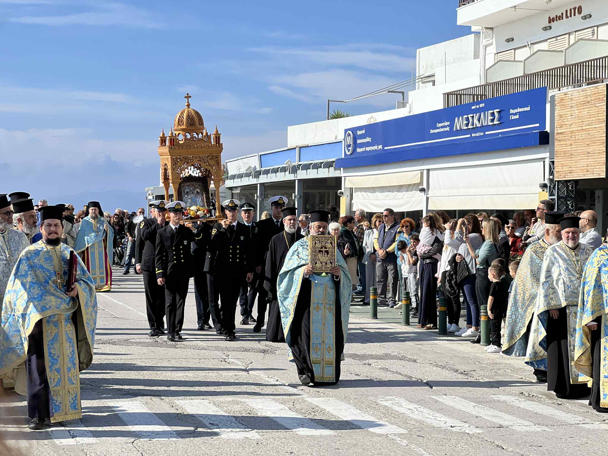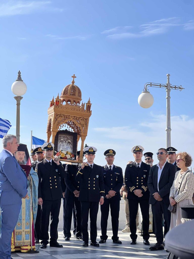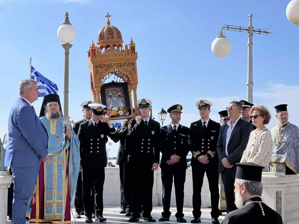 Φωτογραφικό υλικό από την σημερινή Λιτάνευση της Εικόνας των Ταξιαρχών στο νησί της Τήνου. Τελέστηκε δέση στην πλατεία Παντανάσσης και έπειτα συνεχίστηκε η Λιτάνευση και κατέληξε στον Ιερό Μητροπολιτικό Ναό των Παμμεγίστων Ταξιαρχών.