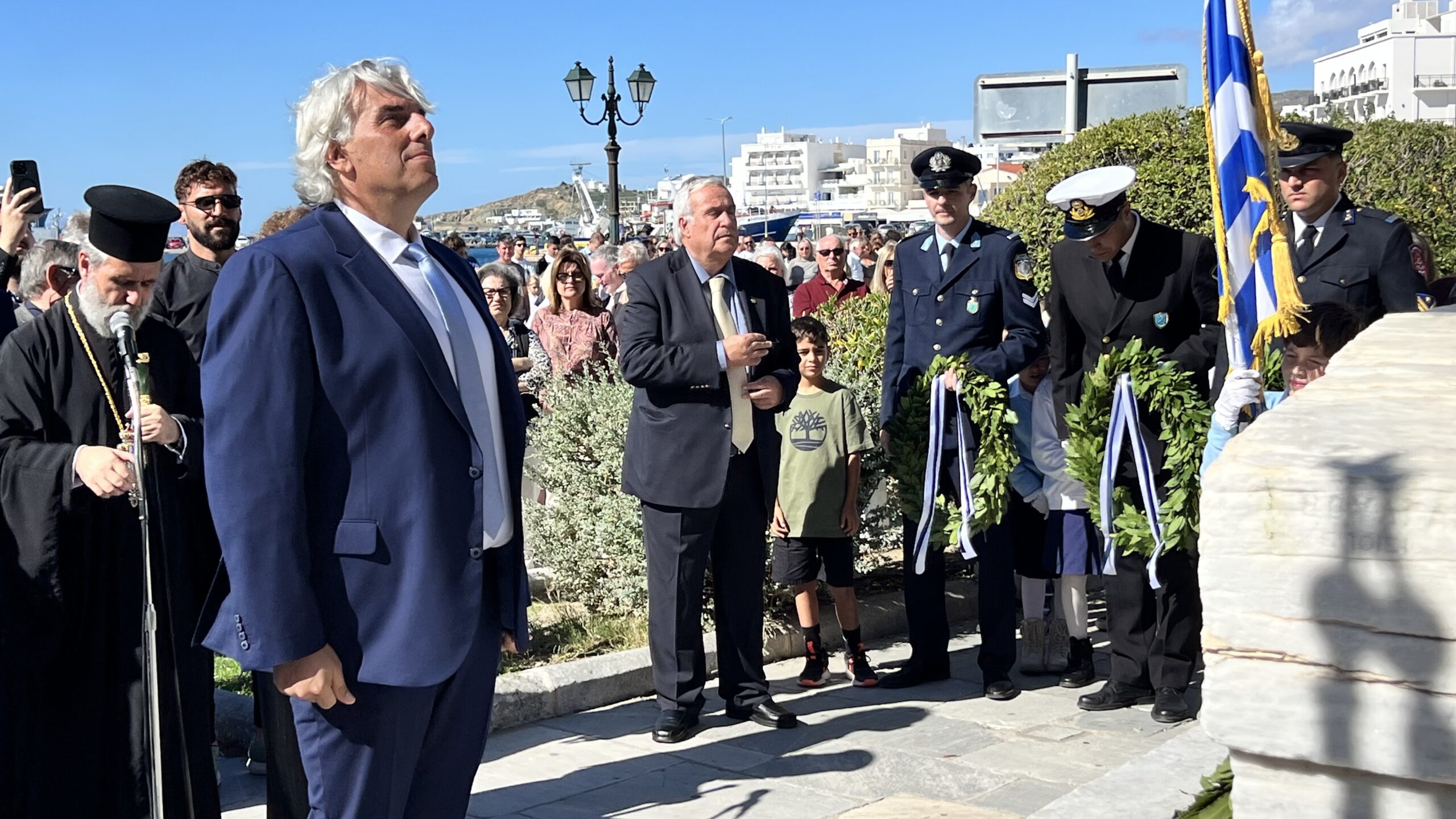 Για την Τήνο, η σημερινή επέτειος είναι βαθιά χαραγμένη στη συλλογική μας μνήμη. Ο τόπος μας βίωσε, νωρίτερα από κάθε άλλο, την πρόκληση της εποχής, με τον ύπουλο τορπιλισμό του ευδρόμου «Έλλη» στο λιμάνι μας, ανήμερα της μεγάλης εορτής της Παναγίας, τον Αύγουστο του 1940. Ωστόσο, το αλύγιστο φρόνημα των Τηνίων και ολόκληρου του Έθνους έδωσε το στίγμα της απάντησης που θα ακολουθούσε: την περήφανη άρνηση της 28ης Οκτωβρίου.