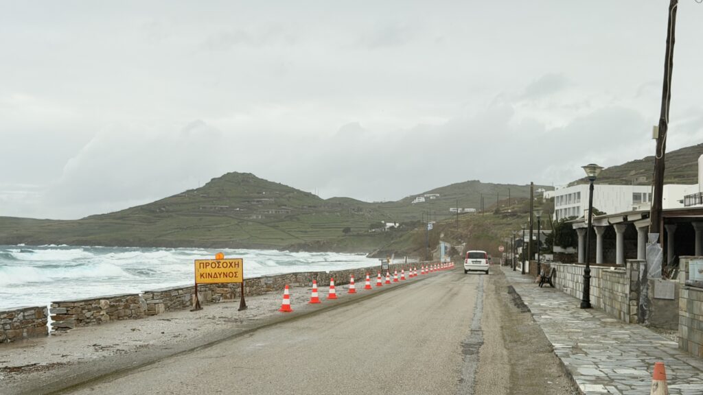 Στο σημείο έχουν τοποθετηθεί κώνοι σήμανσης, ώστε να γίνεται έγκαιρα αντιληπτή η επικινδυνότητα από τους διερχόμενους οδηγούς. Παρόλα αυτά, απαιτείται αυξημένη προσοχή.