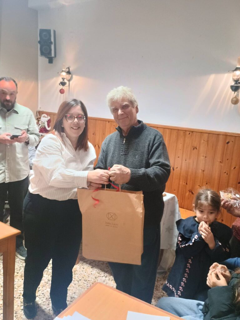 Το φλουρί της βασιλόπιτας έτυχε στον φίλο του συλλόγου κ. Αντώνη Χαρικιόπουλο, ο οποίος με το ακορντεόν του συνόδευσε τη συνάντηση με κάλαντα και αγαπημένα τραγούδια, συμβάλλοντας στο εορταστικό κλίμα της ημέρας.