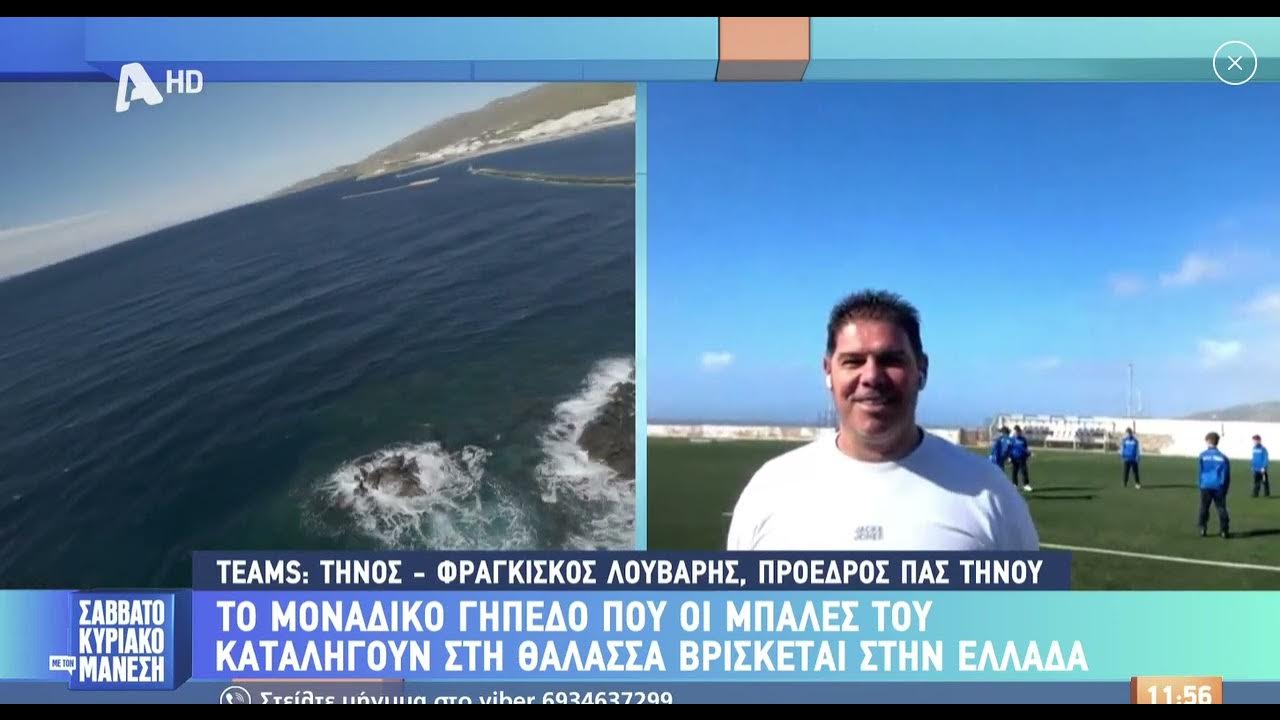 Ζωντανή σύνδεση με την Τήνο και το γήπεδο του Βίντσι πραγματοποιήθηκε σήμερα στην εκπομπή «Σαββατοκύριακο με τον Μάνεση» του τηλεοπτικού σταθμού Alpha.