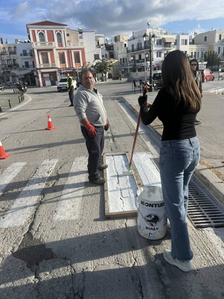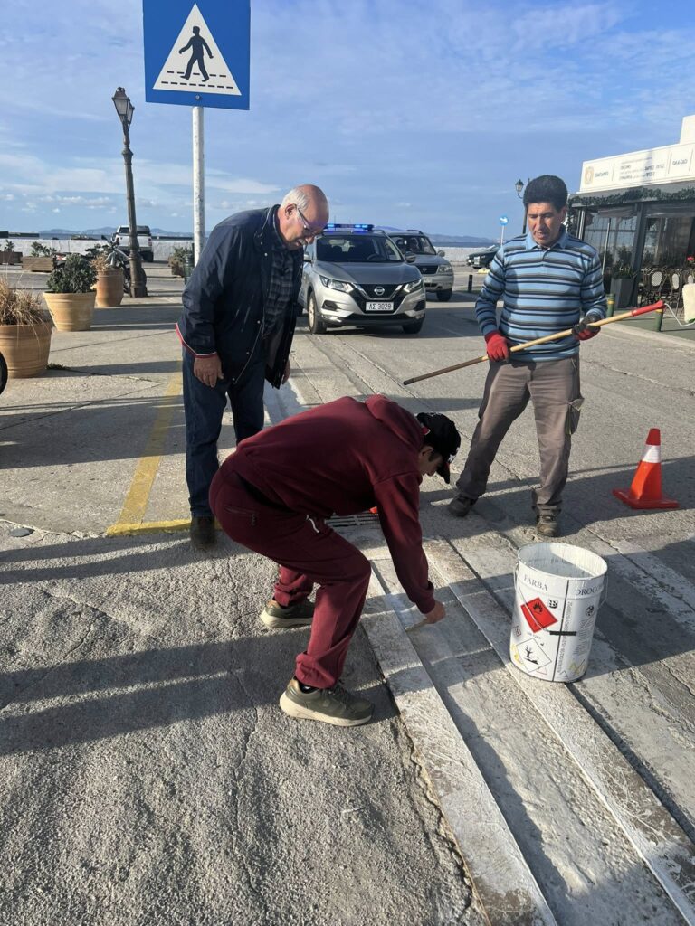 -Βάψαμε συμβολικά τις διαβάσεις της παραλιακής οδού μαζί με μαθητές του Γυμνασίου, του Γεν. Λυκείου και του ΕΠΑΛ Τήνου.