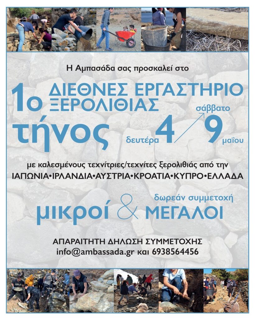 Μικροί και μεγάλοι εθελοντές και μέλη της Ομάδας Ξερολιθιάς της Αμπασάδας δούλεψαν και αυτό το Σαββατοκύριακο σκληρά, στο χωράφι που θα φιλοξενήσει σε 2 εβδομάδες το 1ο Διεθνές Εργαστήριο Ξερολιθιάς: 4-9 Μαΐου 2026, Τήνος . Σας περιμένουμε το επόμενο Σαββατοκύριακο στην Καρδιανή, για να συνεχίσουμε τη δουλειά στο χωράφι, για μια ακόμη αμπασάδα. Και, έπειτα, στο Εργαστήριο, μαζί με ειδικούς τεχνίτες από την Ιαπωνία, την Ιρλανδία, την Αυστρία, την Κροατία, την Κύπρο και βεβαίως από την Ελλάδα!