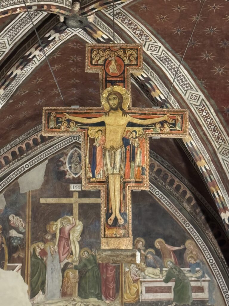 Τελευταία εκκλησία εντός της πόλης της Ασίζης που είχαμε την χαρά να επισκεφτούμε ήταν εκείνη της αγίας Κλάρας, όπου φυλάσσεται ο τάφος της αλλά και ο Εσταυρωμένος που μίλησε στον άγιο Φραγκίσκο.