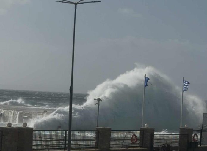 Ιδιαίτερη προσοχή απαιτείται στην ευρύτερη περιοχή του λιμανιού, όπου τα κύματα είναι υψηλά και οι ριπές του ανέμου ισχυρές. Συνιστάται οι οδηγοί να κινούνται με χαμηλές ταχύτητες και, όπου είναι εφικτό, να αποφεύγουν τις άσκοπες μετακινήσεις.