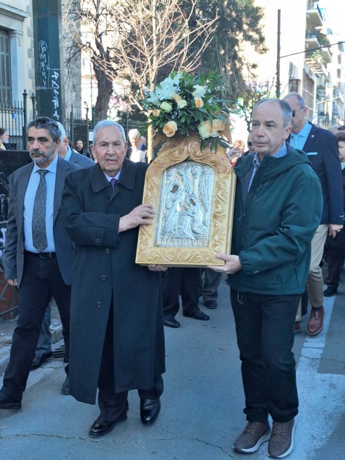 Στις 11:00 ακολούθησε η μεταφορά της Ιεράς Εικόνας από τον Άγιο Βασίλειο στο κτίριο της Αδελφότητας, ενώ στις 11:15 πραγματοποιήθηκε προσφώνηση από τον Πρόεδρο του Διοικητικού Συμβουλίου της Αδελφότητας των εν Αθήναις Τηνίων, κ. Εμμανουήλ Σκαρή.
