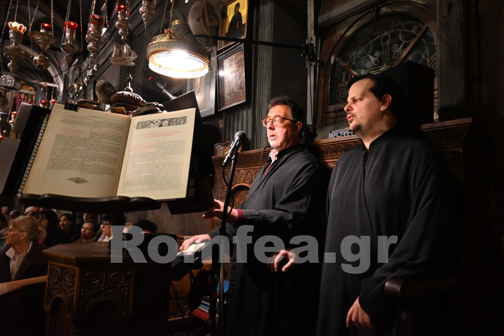 Τους εκκλησιαστικούς ύμνους απέδωσε χορός ιεροψαλτών υπό τη διεύθυνση του Πρωτοψάλτη κ. Μάριου Κυριάκου.