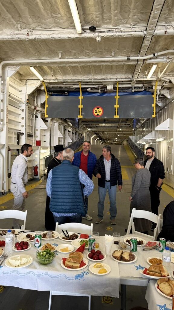 Την Κυριακή του Πάσχα 12 Απριλίου 2026, όπως κάθε χρόνο, ο πρόεδρος κ. Ανδρέας Τσιμέκης, η ταμίας κ. Πετρίνα Κολλάρου και ο ειδικός γραμματέας κ. Βαγγέλης Ζαλώνης του Εμποροεπαγγελματικού & Βιοτεχνικού Συλλόγου Τήνου επισκέφτηκαν και πρόσφεραν κεράσματα στον καπετάνιο και στα μέλη του πληρώματος του GOLDEN PRINCESS της GOLDEN STAR FERRIES.